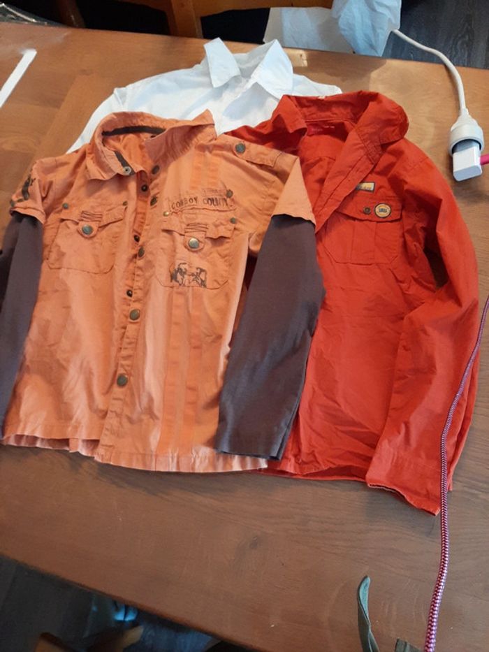 Lot de 3 chemises manches longues 10 ans Divers marques Une tâche en photo sur la chemise orange