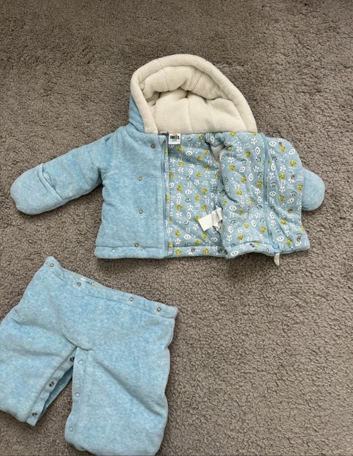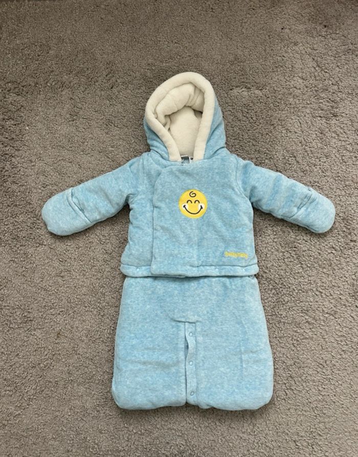 Combinaison pilote de chez Orchestra Ingénieux grâce aux pressions : la combinaison se détache en deux parties, vous pouvez donc porter uniquement la veste, et s’adapte au maxi cosi. En excellent état Taille 3 mois - 60 cm