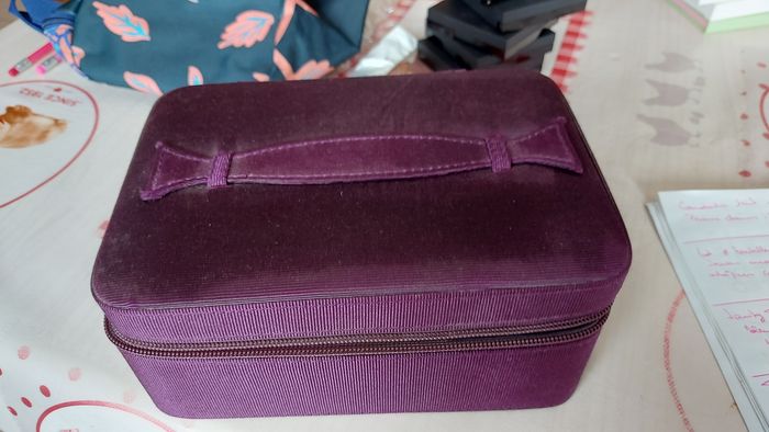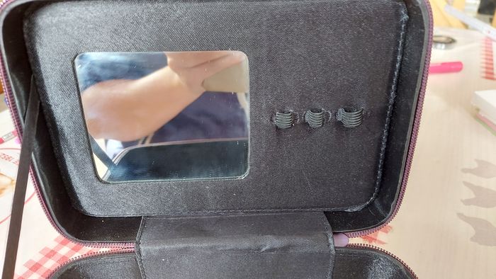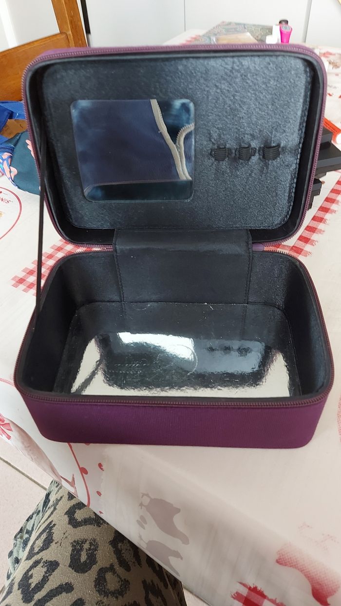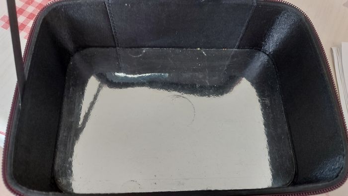 Trousse de maquillage rigide, avec miroir et supports pour pinceaux 20 x 14 x ht 9,5 cm Très bon état mais poussiéreuse à cause de l'entreposage