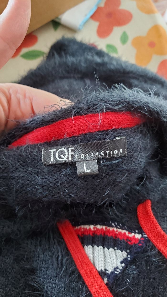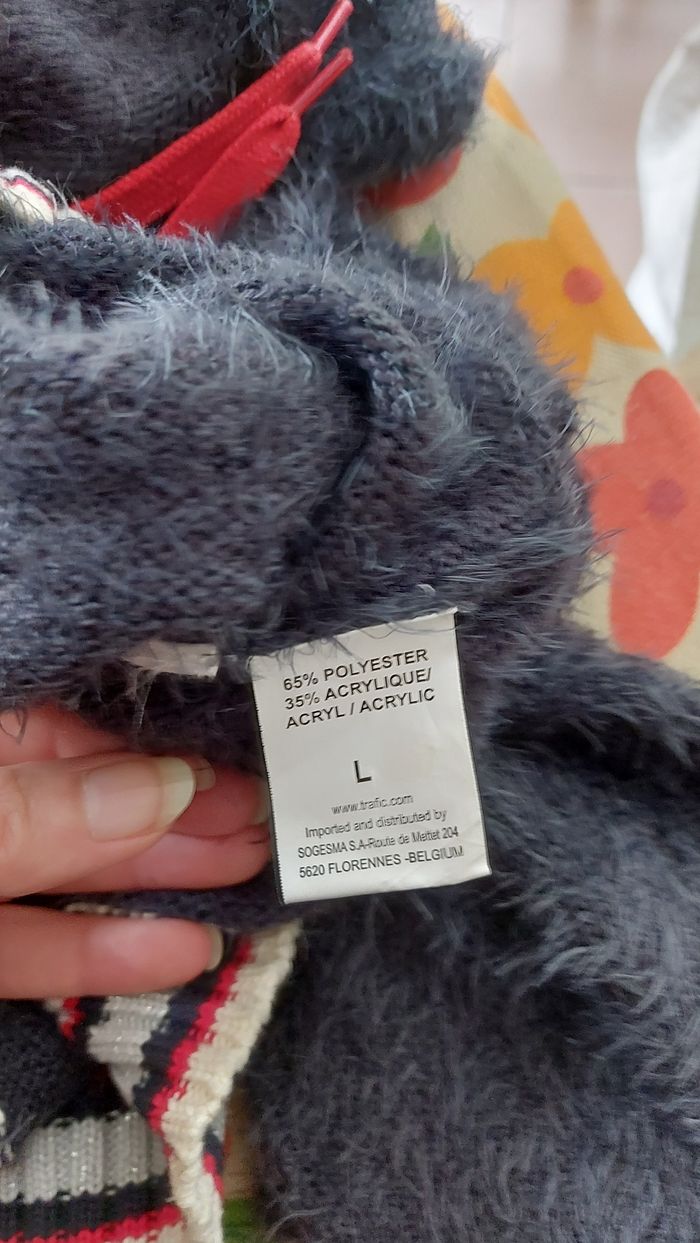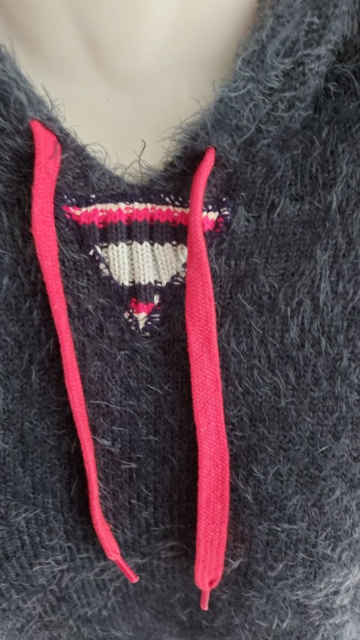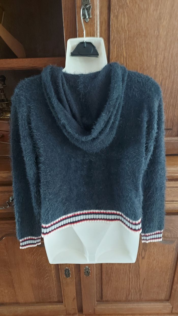 Sweet à capuche bleu, matière poils doux, TQF, taille L Sous-bras 52 cm, Longueur 55 cm