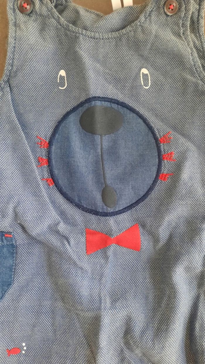 Magnifique salopette d été. Se porte seule avec un tee shirt ou avec un body. Très bon état. Petit nounours rigolo