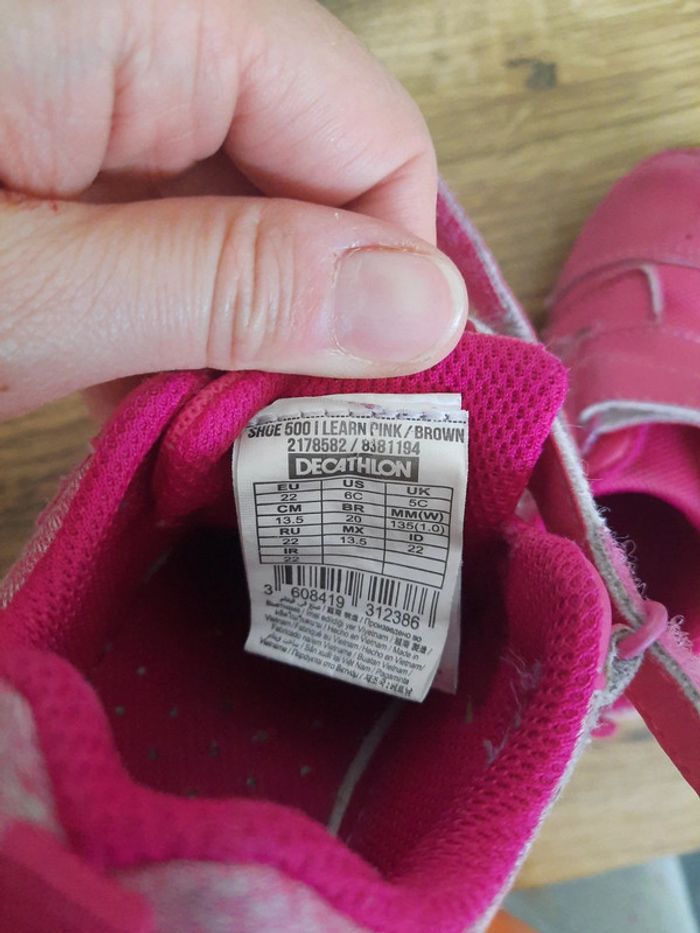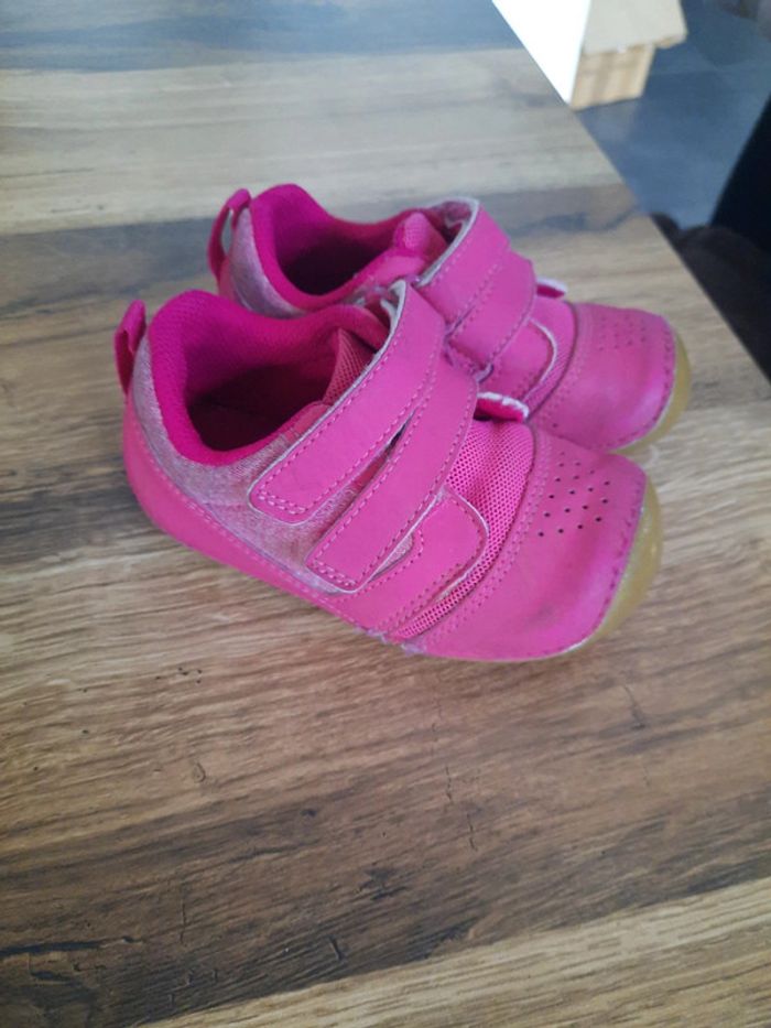 Belles baskets roses taille 22. Chaussures préférée de ma fille en 22 et de moi pour la rapidité de mise aux pieds 😅 . Elle sont super confortables. Facile à mettre ma fille essayait de les mettre seule et les enlevait seule à 2 ans. Idéal pour les débuts d autonomie. Décathlon
