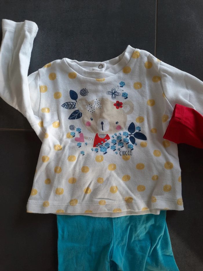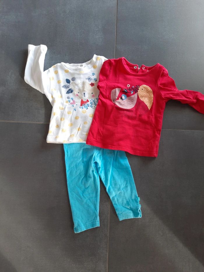 2 tee shirt, 1 chicco 1 catimini. 1 legging 12 mois. Bon état général. Petit prix pour le lot