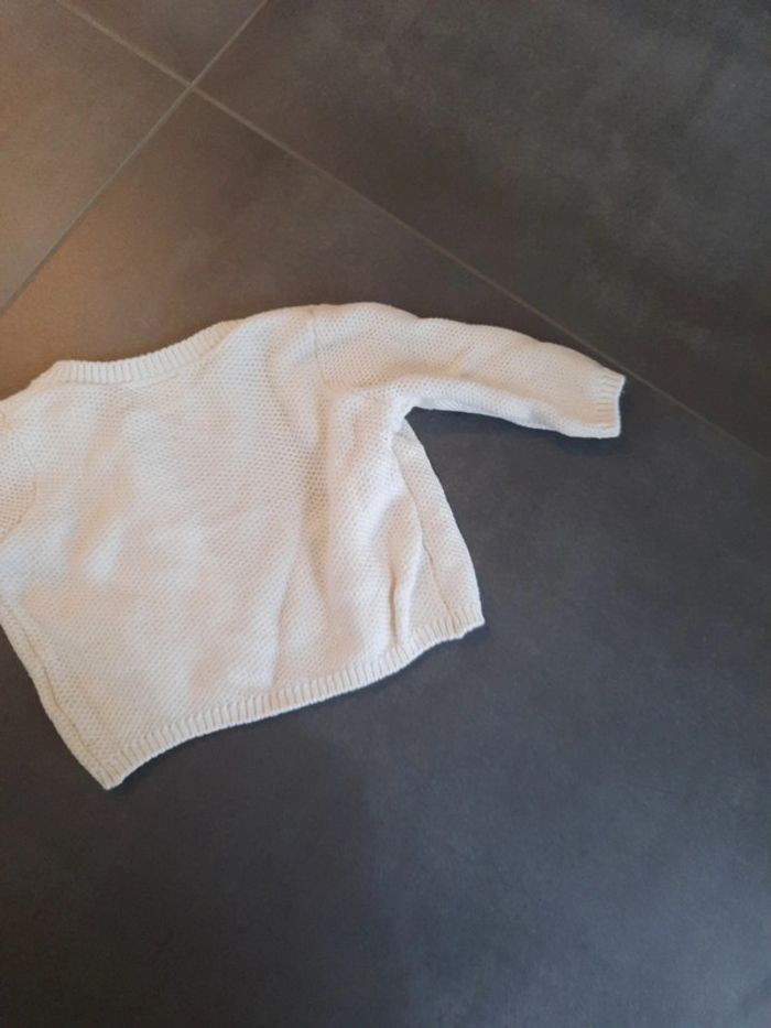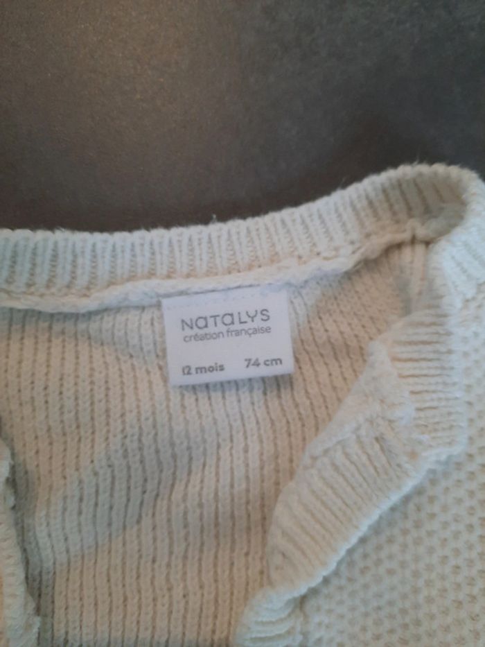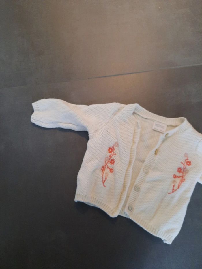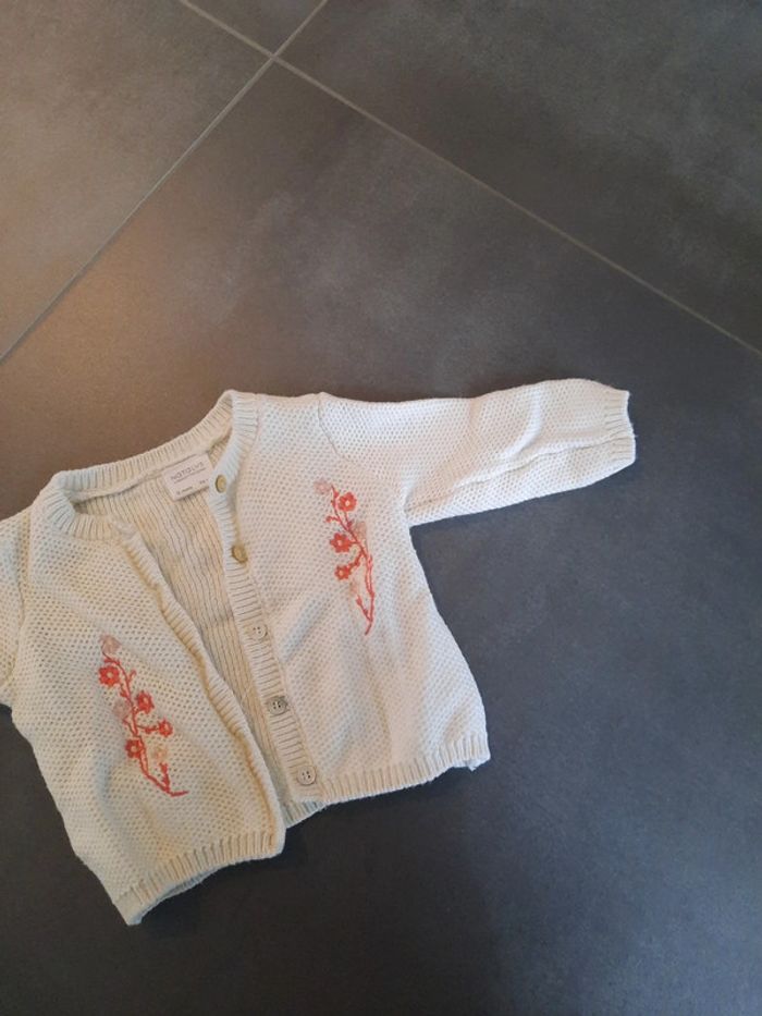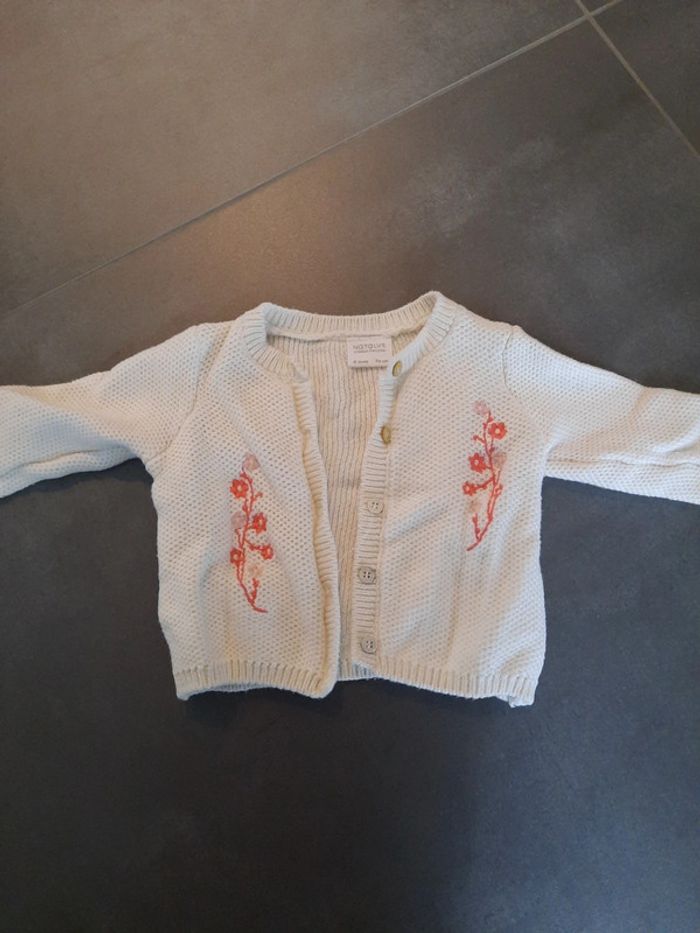 Magnifique gilet Nathalys 12 mois. Va avec tout. Très doux. Très bon état. Blanc et fleurs roses