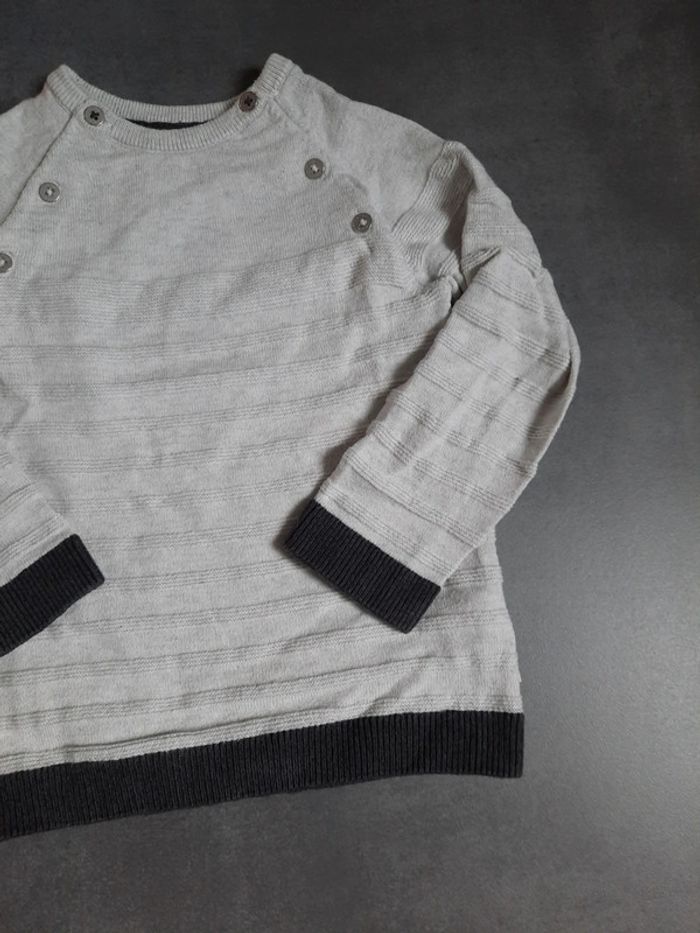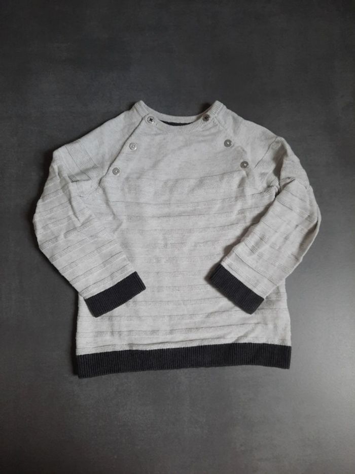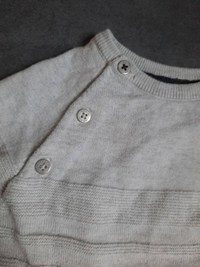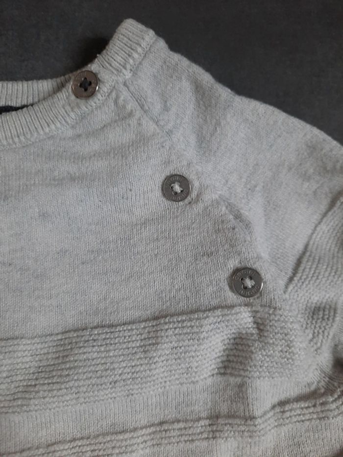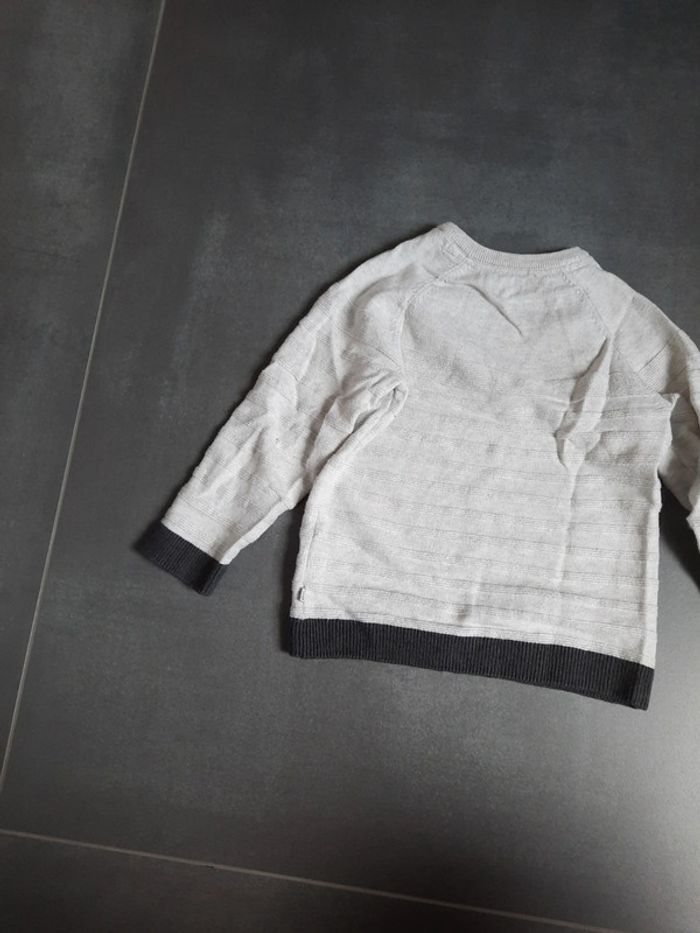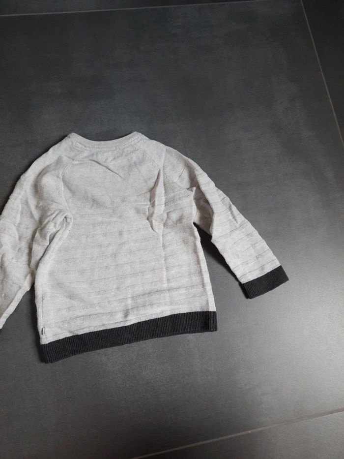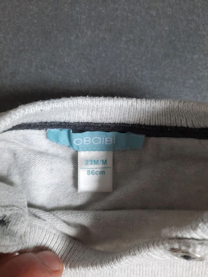 Pull fin très beau, habillé ou tous les jours. Okaïdi 23 mois. Idéal intérieur peu chauffé. Mi saison ou sous une veste bien chaude. Très bon état. Gris foncé et gris clair.