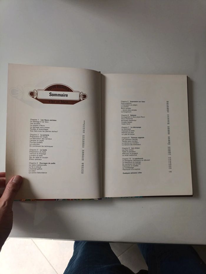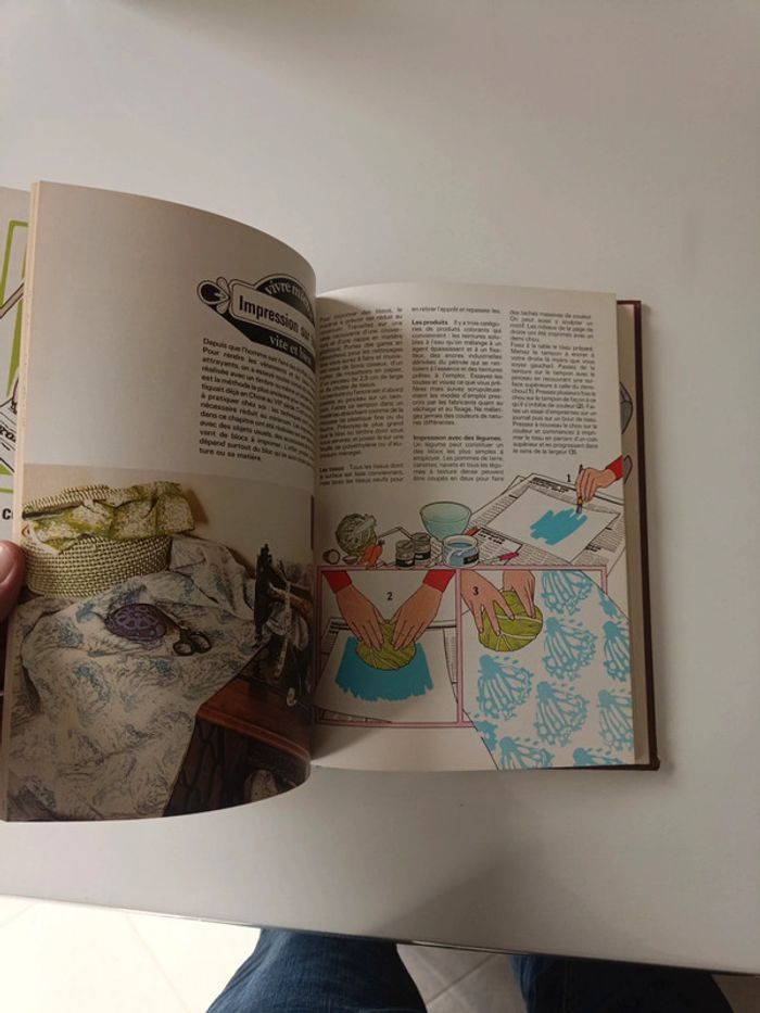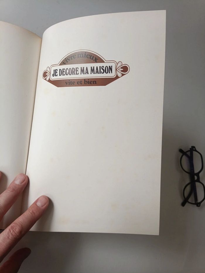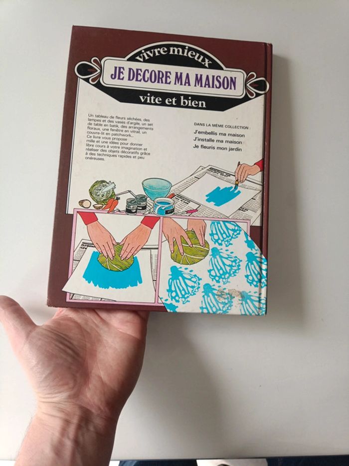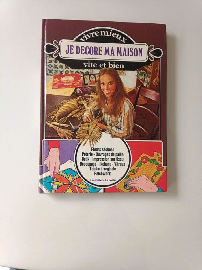 Livre vintage 70's Je décore ma maison vite et bien. Ed la Boétie. Bon état général quelques marques sur la couverture et tâches d'humidité sur les premières et dernières pages. Livre rare.