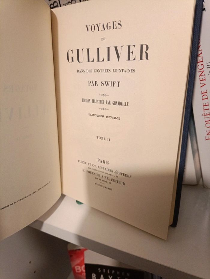 Les Voyages de Gulliver Dans des Contrées Lointaines, Édition Illustrée Par Grandville en Deux Volumes - Swift Bon état général une tâche d'encre sur la première page du premier tome et étiquettes faculté de Nantes sur les dernières pages des deux volumes.
