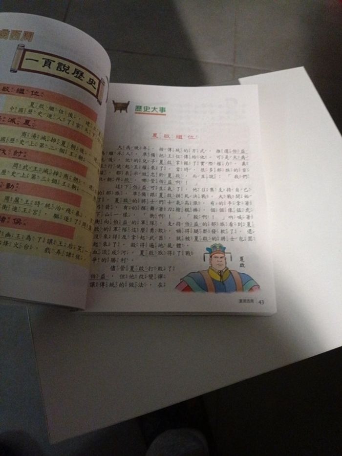 Livre en chinois avec illustrations sur l'histoire et les histoires de la Chine.
