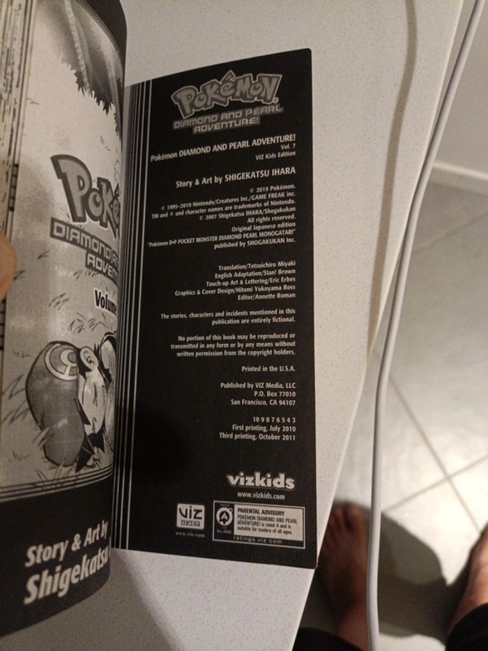 Manga pokémon en anglais. Diamant and pearl aventure ! Tome 7. Le plastique de la couverture ce décolle légèrement sur le coin du dos de couverture.
