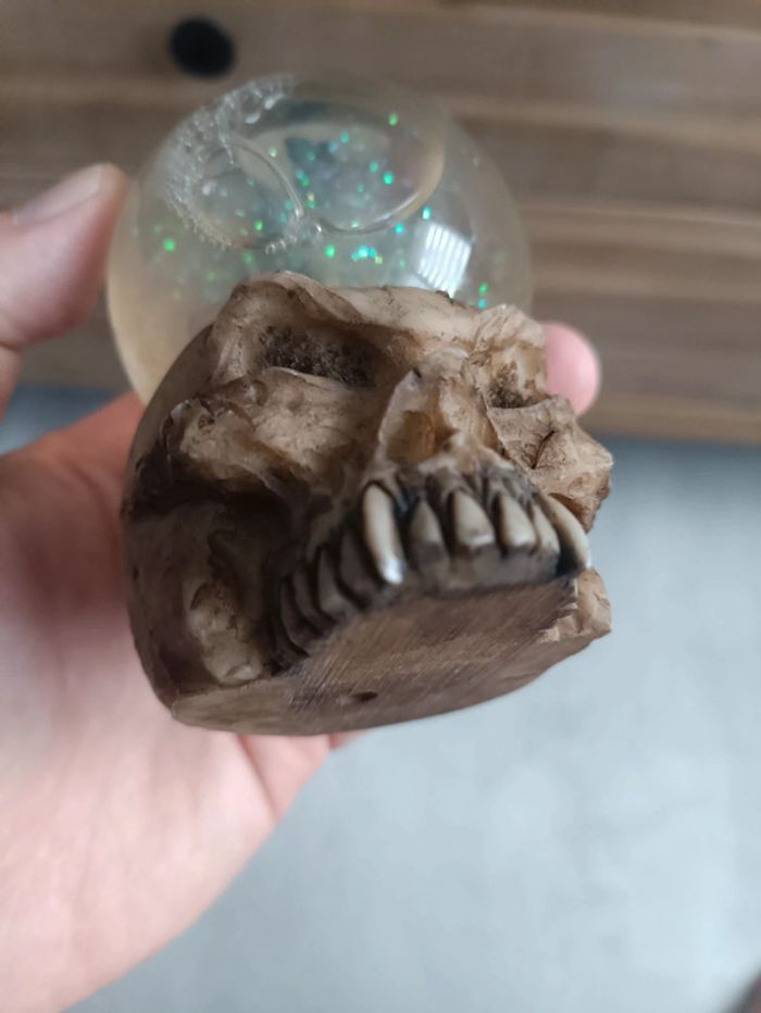 Une des dents du crâne est très légèrement abimé et eau un peu trouble.