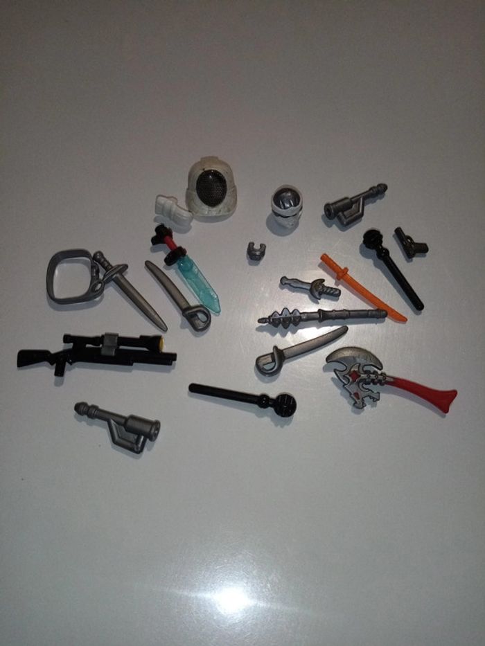 Lot d'armes diverses et accessoires Playmobil et lego
