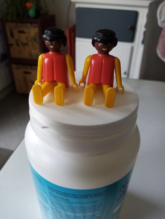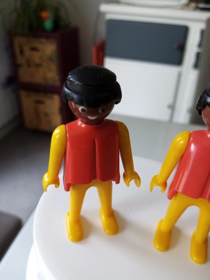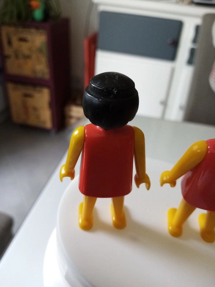 Lot de 2 personnages playmobil vintage 1974 (geobra), cheveux abîmé.