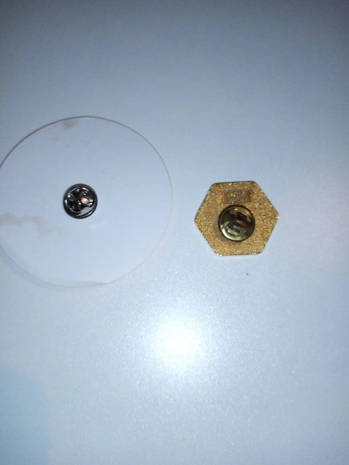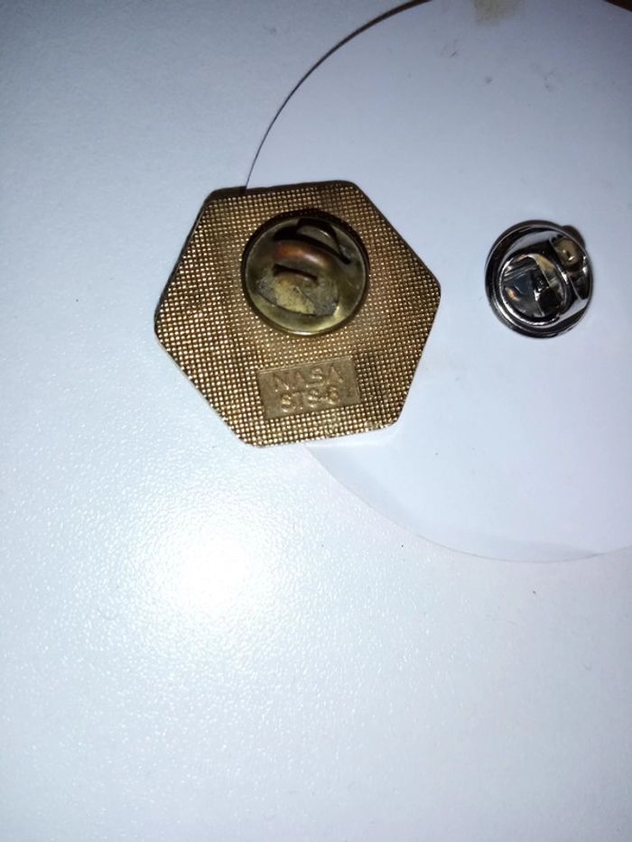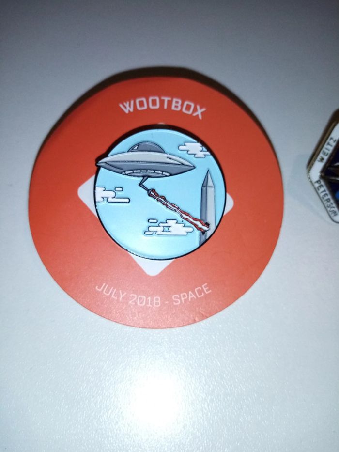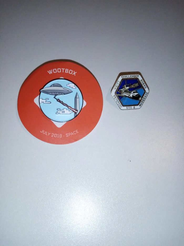 Un pin's wootbox neuf et un pin's nasa challenger qui a une petite rayure sous la navette.