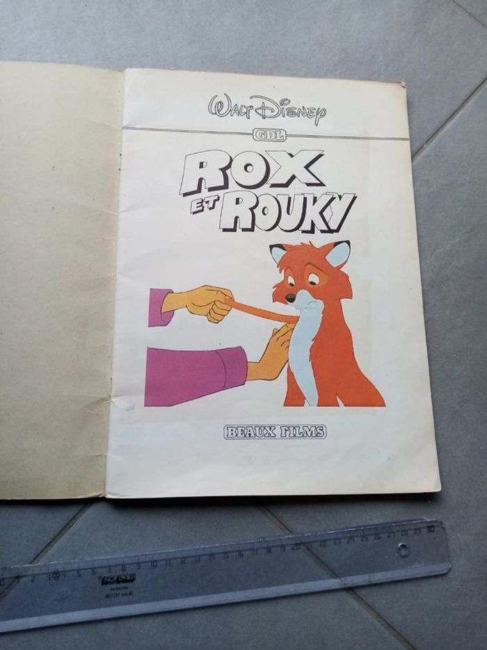 Grand album vintage du dessin animé Rox et Rouky de Disney. Marque de pliure sur couverture et marque de scotch à l'intérieur sinon bon état énorme vu de son âge.