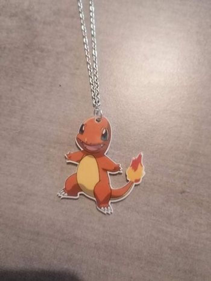 Collier argenté de 45cm environ jamais porté (donc neuf) représentant le Pokémon Salamèche