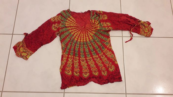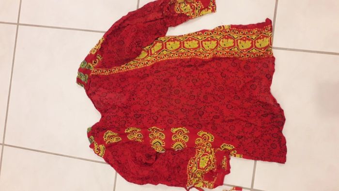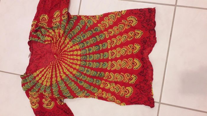 Tunique rouge motif jaune et vert 100% rayone N hésitez pas à découvrir les autres articles de mon dressing! 😉