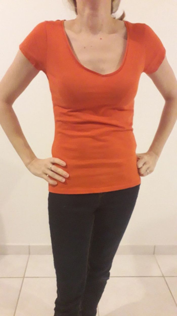 Tee-shirt col V. Comme neuf! Goutte d eau dans le cou. Etiqueté taille 2 mais équivaut à une 36 N hésitez pas à découvrir les autres articles de mon dressing ! 😉