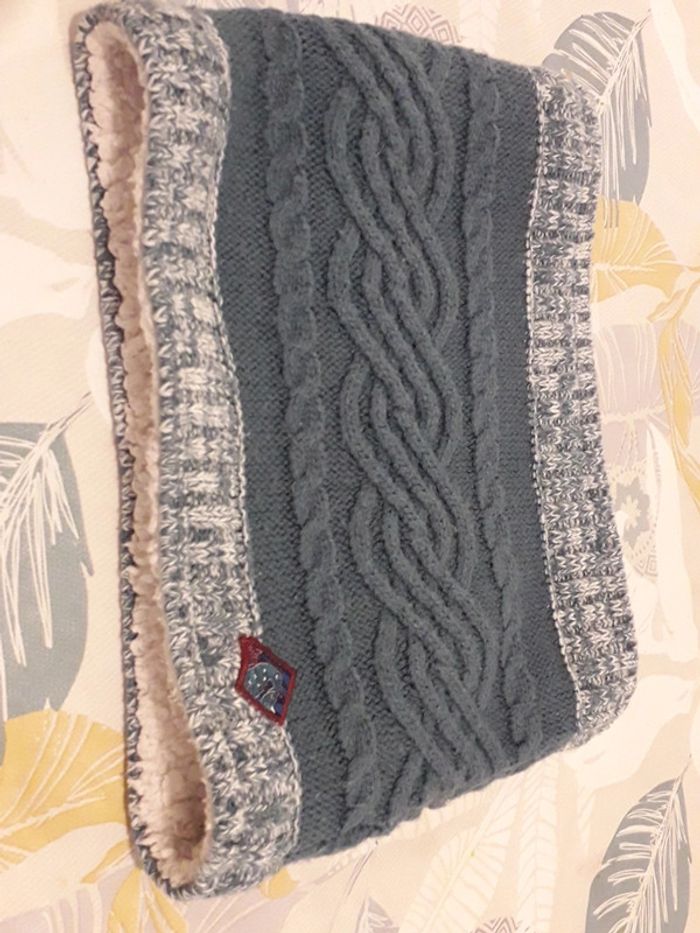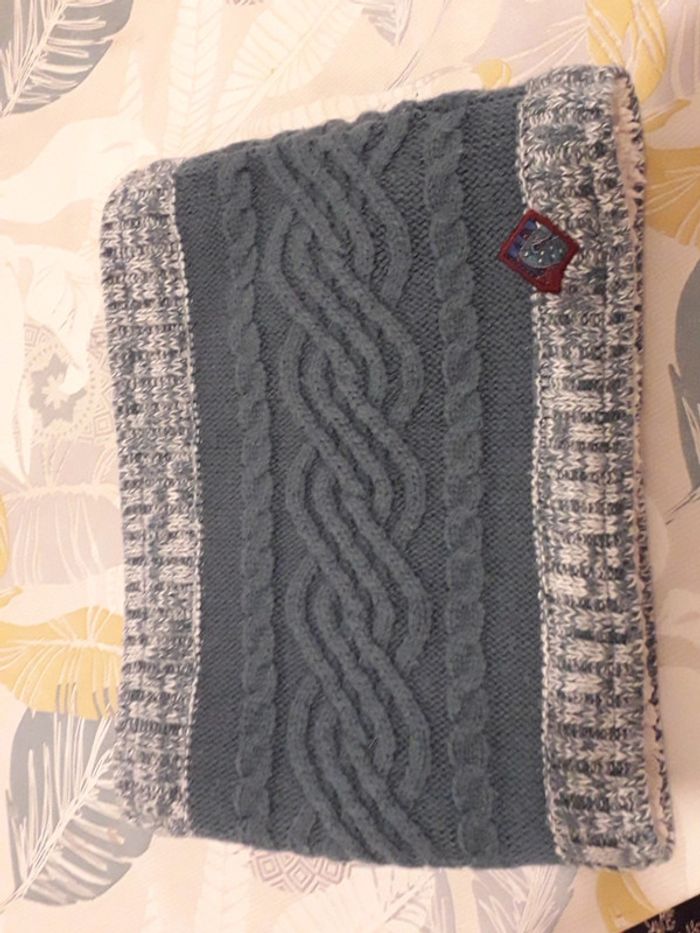 Cache cou torsadé bleu canard, bord chiné. L intérieur est tout doux aspect mouton. ( voir photos ). Pas de défaut N hésitez pas à découvrir les autres articles de mon dressing! 😉