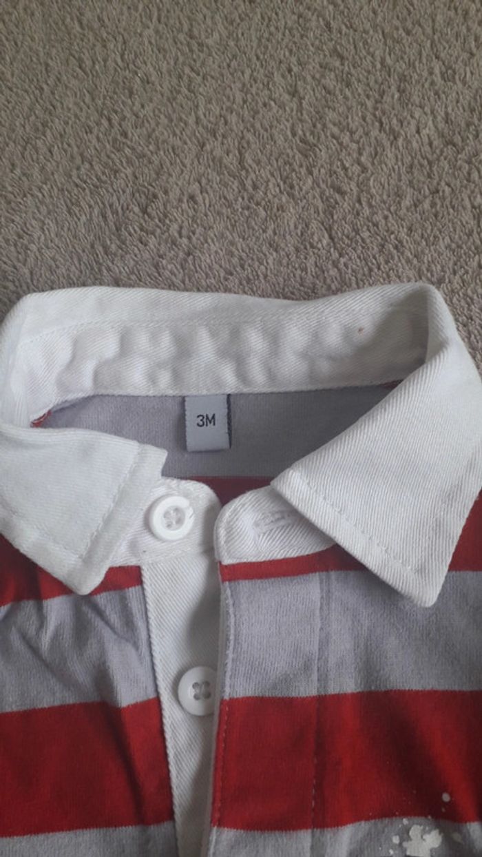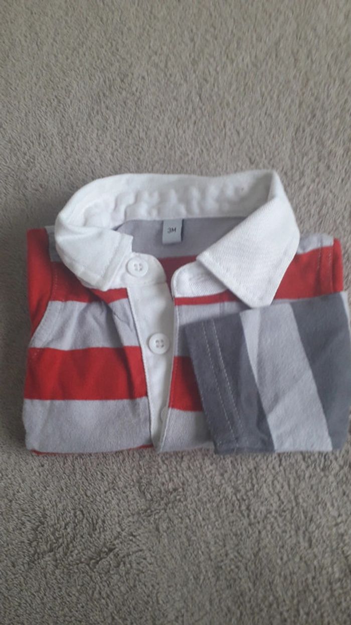 Polo rayé rouge et gris. N hésitez pas à découvrir les autres articles de mon dressing ! 😉