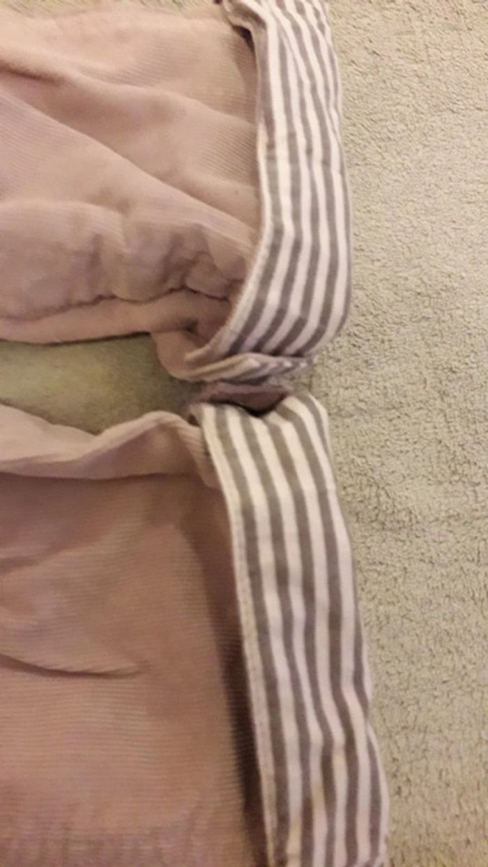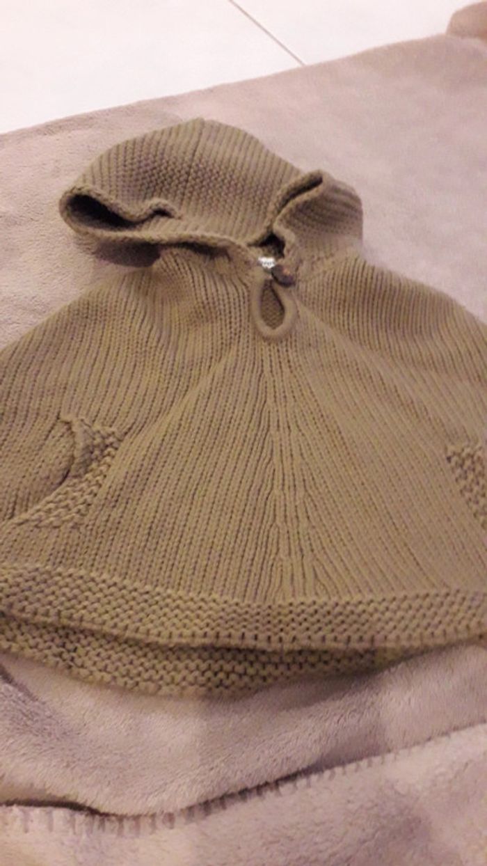 Ensemble de 3 articles 1Poncho kaki à capuche 1 salopette velours milleraies vieux rose 1 tee-shirt rayé vieux rose et kaki.