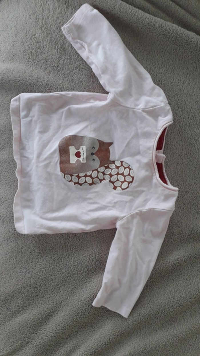 2 Tee-shirt quasi neuf 1 rose framboise. Imprimé pailleté motif feuille rose poudré .Taille 3mois. 1 rose framboise. Imprimé pailleté écureuil Très facile à mettre car il y a des pressions tout le long du dos. N hésitez pas à découvrir les autres articles dans mon dressing! 😉