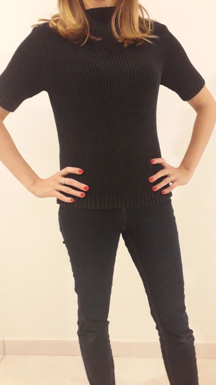 Pull manches courtes, noir côtelé. La couleur est noir grisâtre. Jolie encolure Découvrez d autres articles dans mon dressing!😉