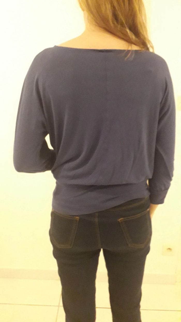 Tee-shirt Camaïeu bleu électrique. Une bande resserrée en bas, encolure col bateau, manches 3/4. Découvrez d autres articles dans mon dressing!😉