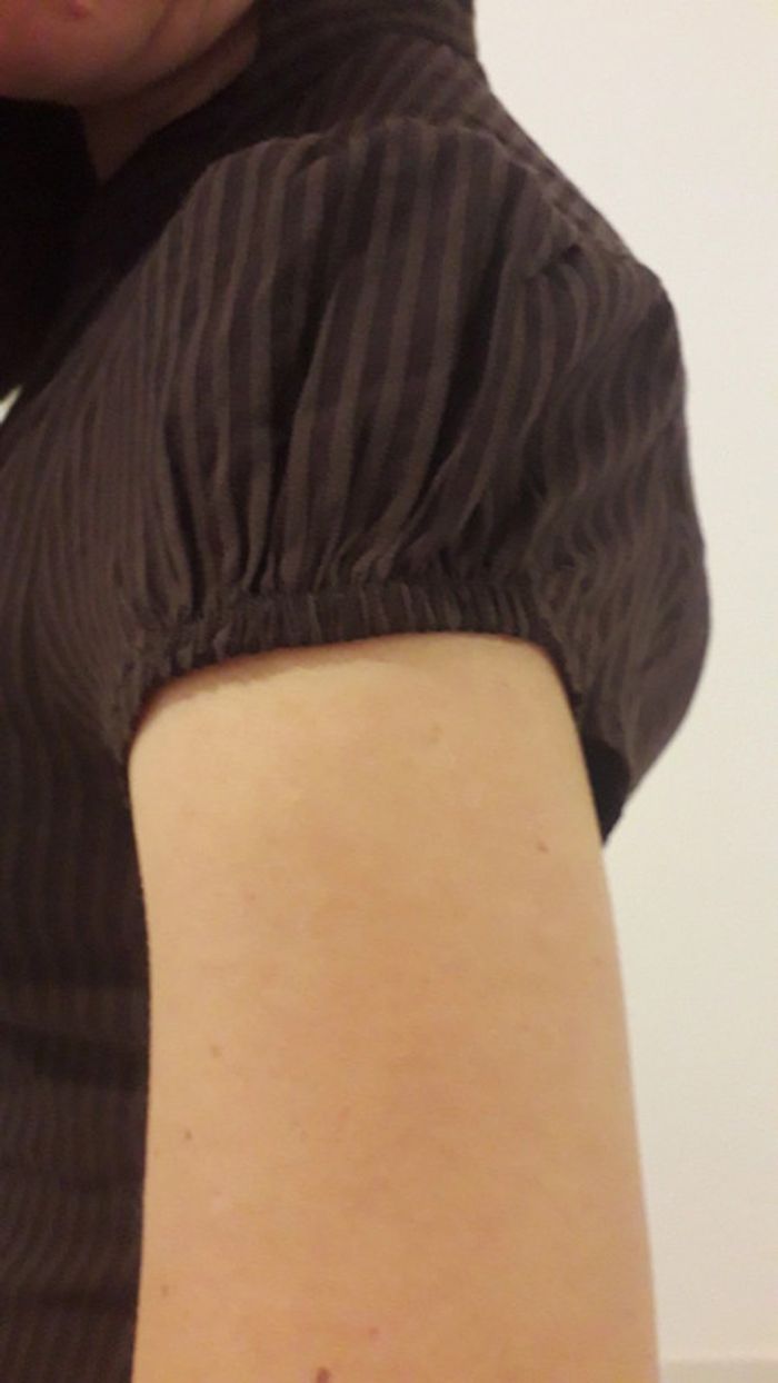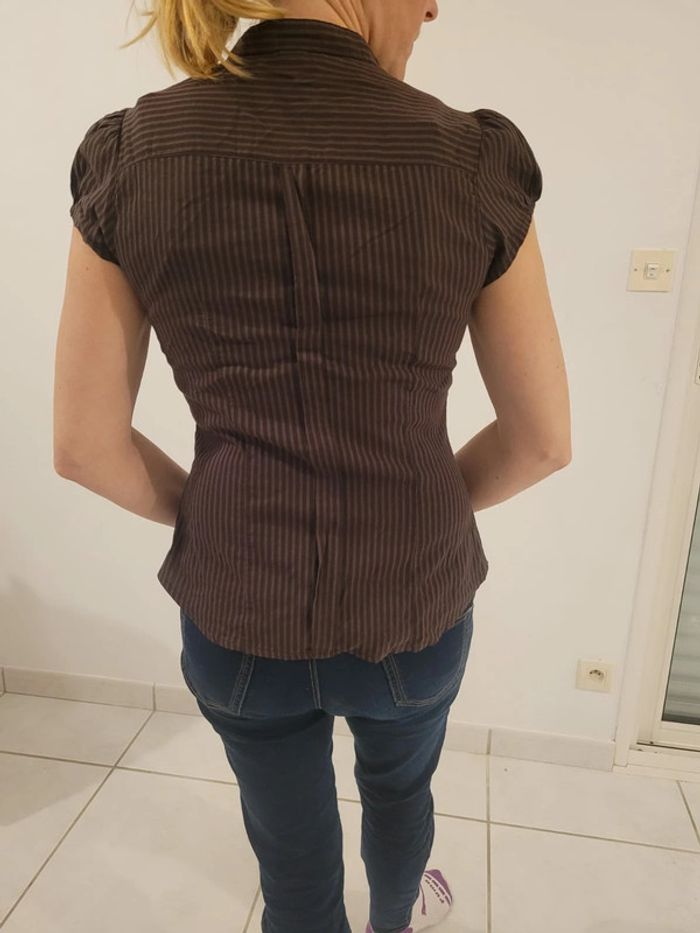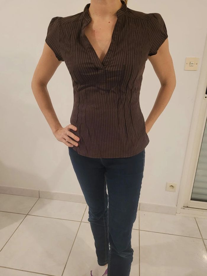 Chemisier rayure marron col V, manches ballon. Découvrez d autres articles dans mon dressing!😉