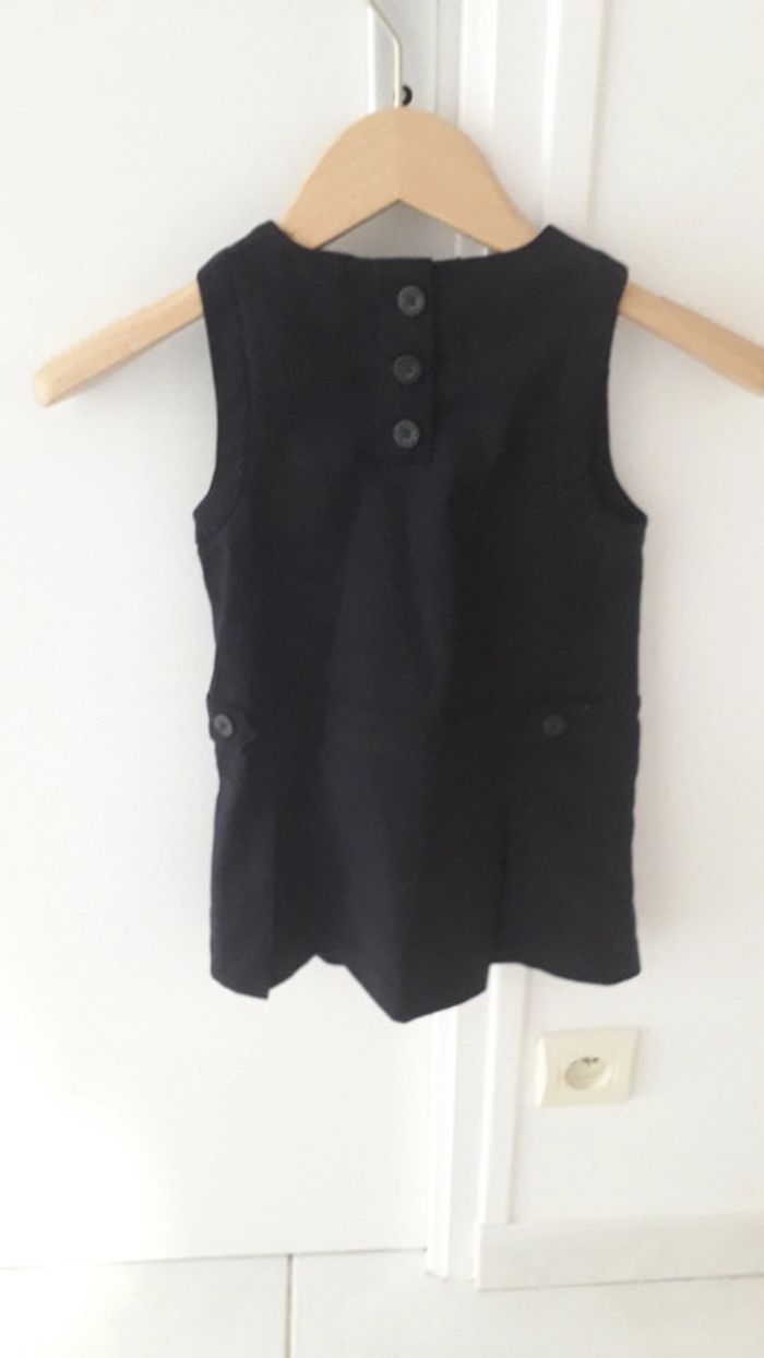 Jolie robe bleu marine tres foncé Okaidi. Se ferme avec 3 boutons dans le dos. N hésitez pas à découvrir les autres articles de mon dressing ! 😉