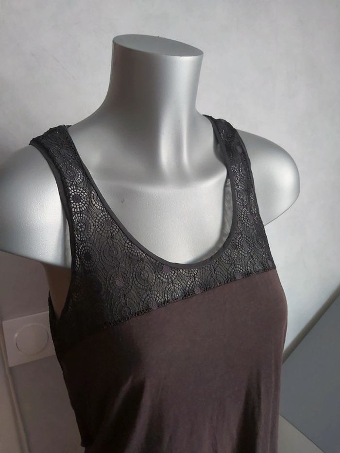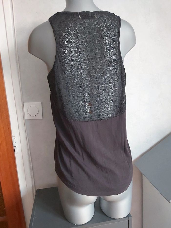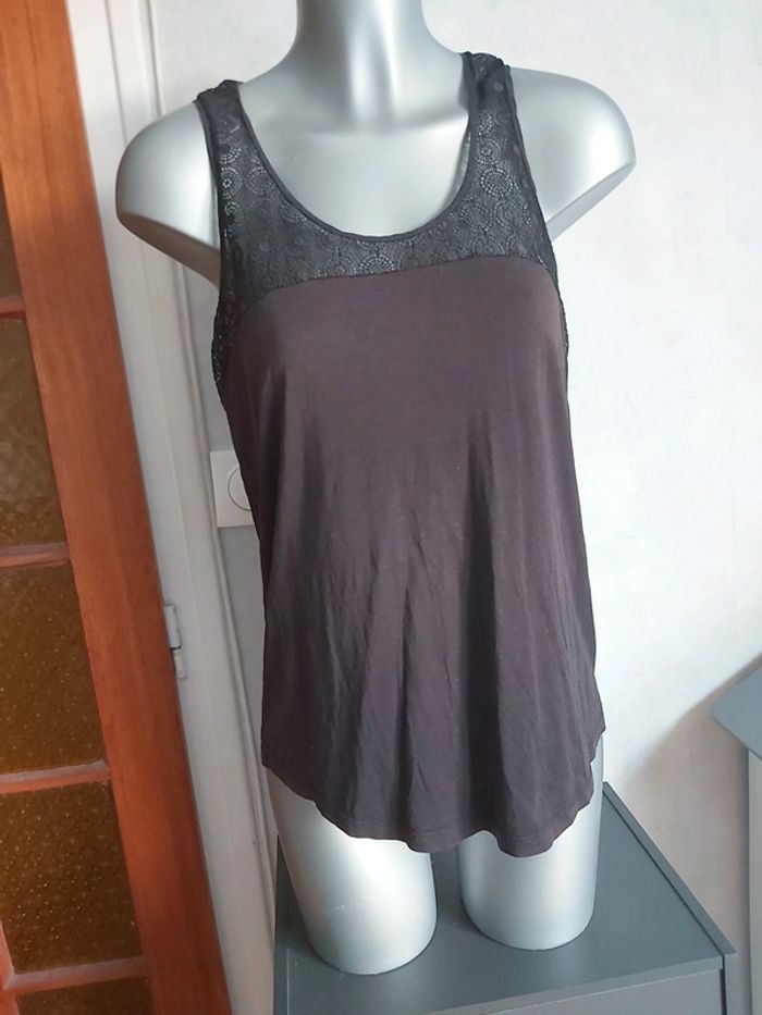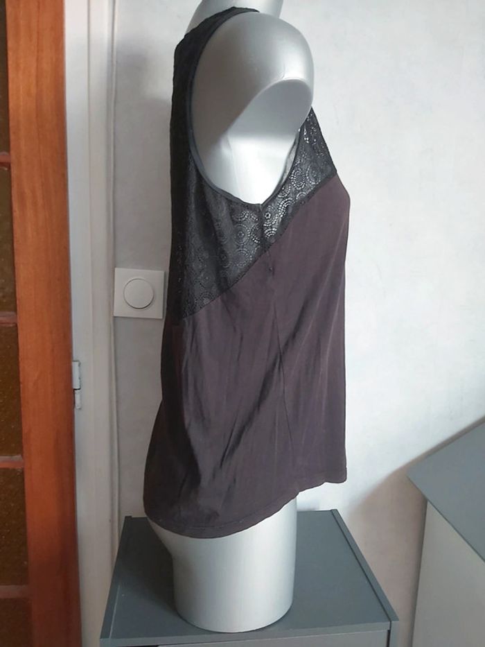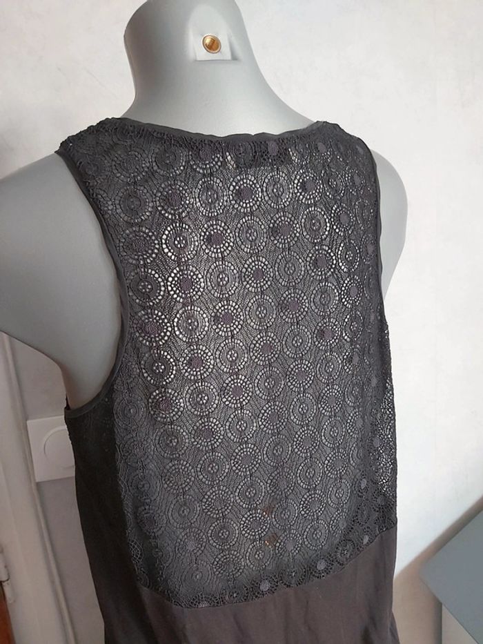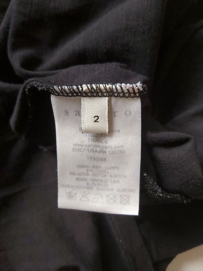 Haut noir sans manches Marque Sandro Paris Taille 2 Une partie du dos est transparente, avec joli travail de dentelle