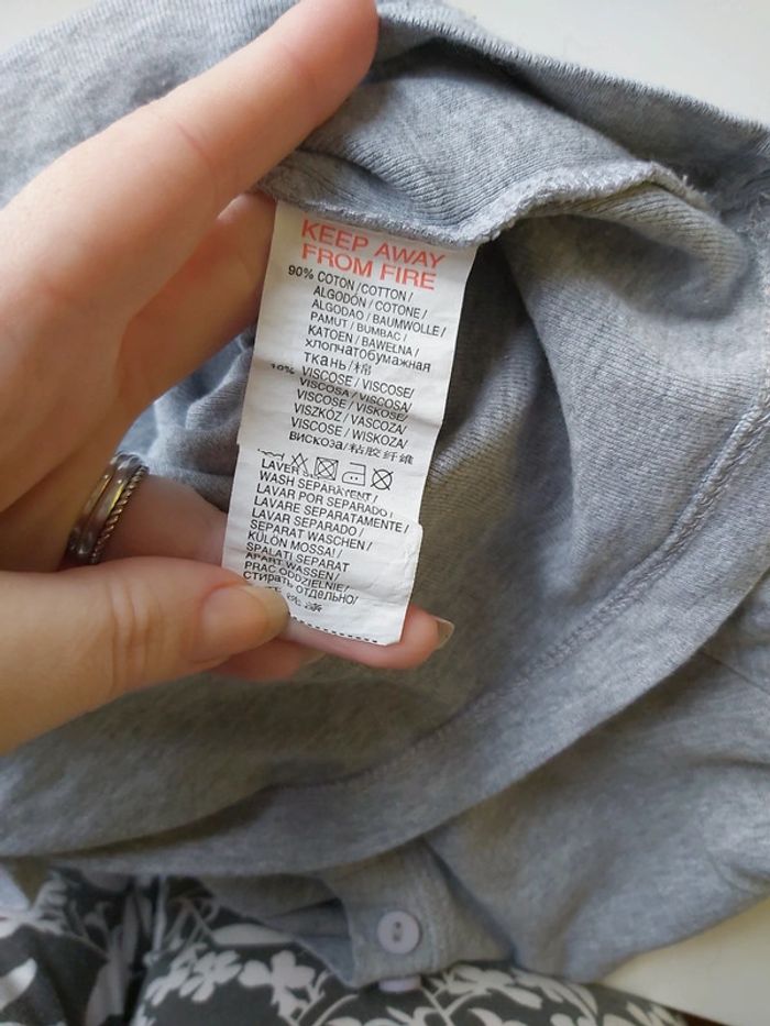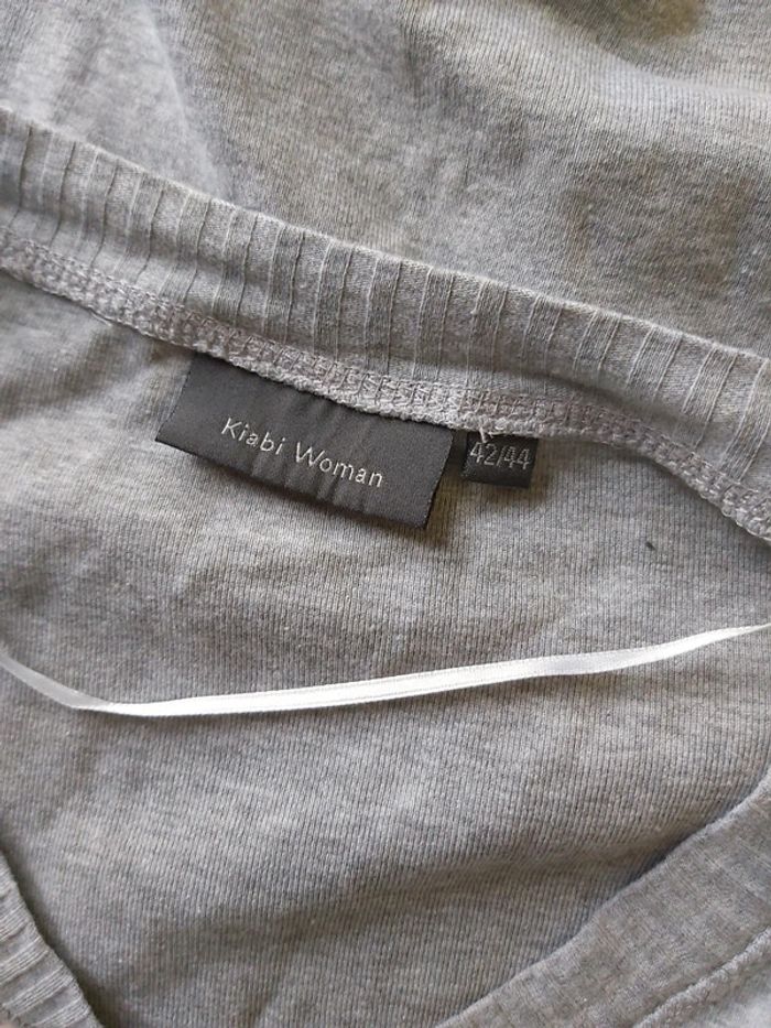 Manches 3/4 pour ce petit pull gris 90% coton Kiabi taille 42-44 Joli col V