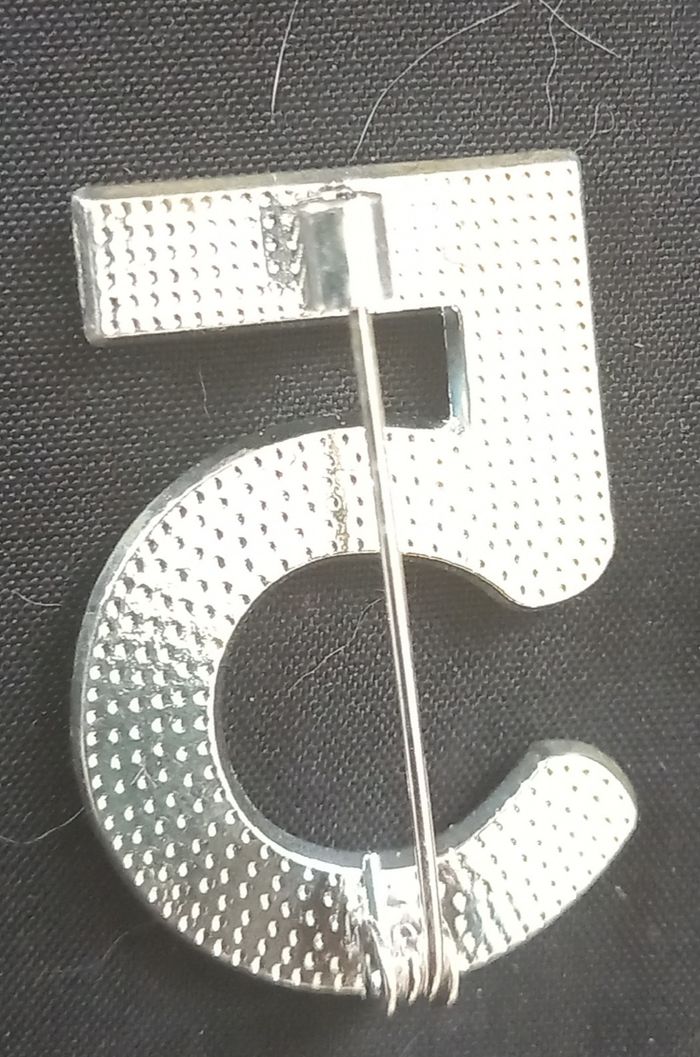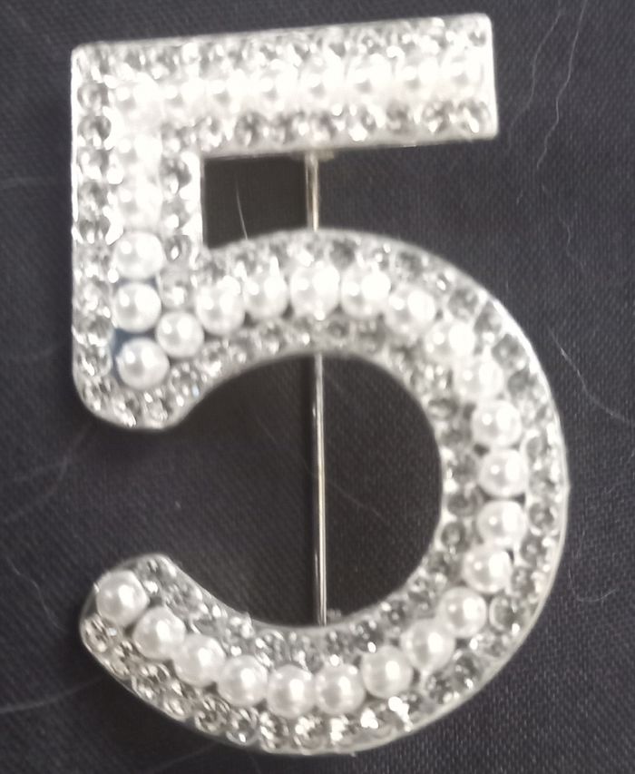 Broche de couleur argentée avec perles et strass Hauteur : 3,5 cm Largeur : 2,2 cm