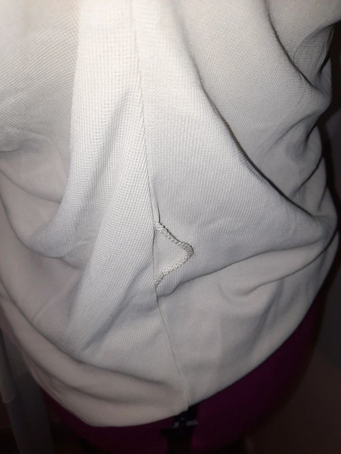 Parfait état Étiquette de composition coupée, je pense à du polyester, le tissu est très fluide. Mesure aisselle à aisselle : 52 cm