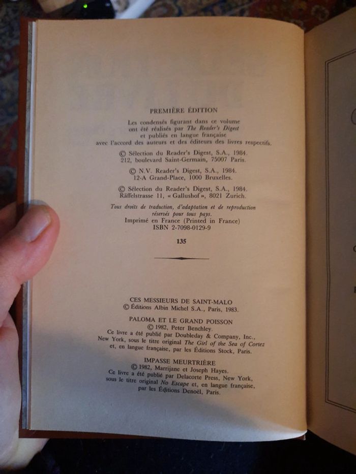 Bernard Simiot, ces messieurs de St Malo Peter Benchley, Paloma et le grand poisson Joseph Hayes, impasse meurtrière Bon état, voir photos #sevakk22_livre