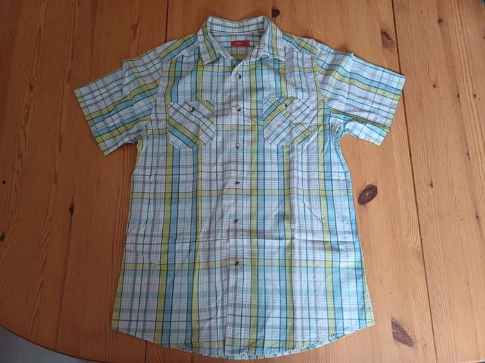Chemisette à carreaux et à rayures en très bon état. Taille M.