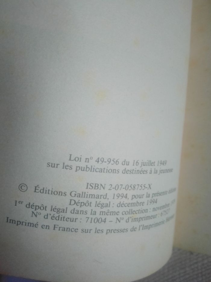 Livre de 94 pages. Gallimard Jeunesse. Jauni. Vieille édition. Encore en bon état malgré les années.
