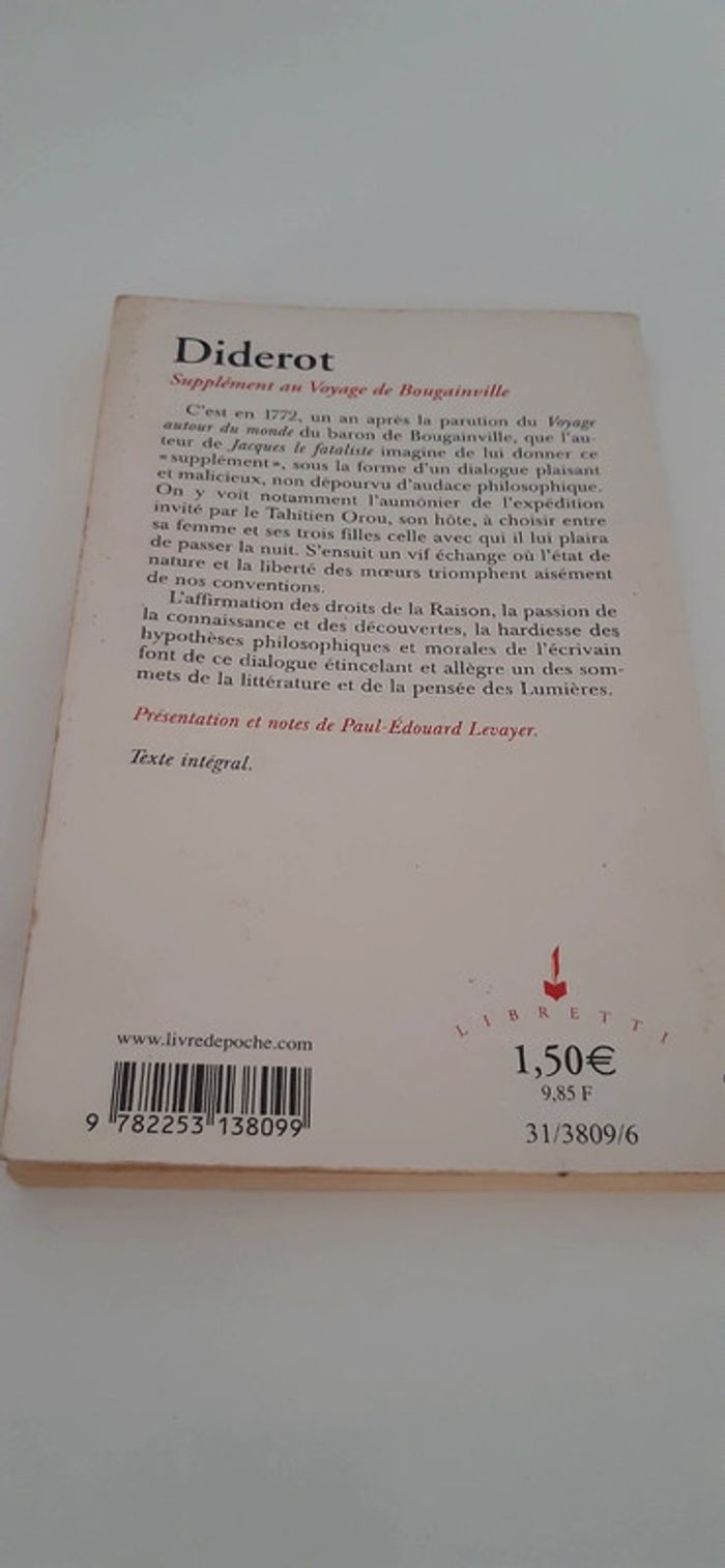 Livre Supplément au voyage de Bougainville de Diderot - photo numéro 1