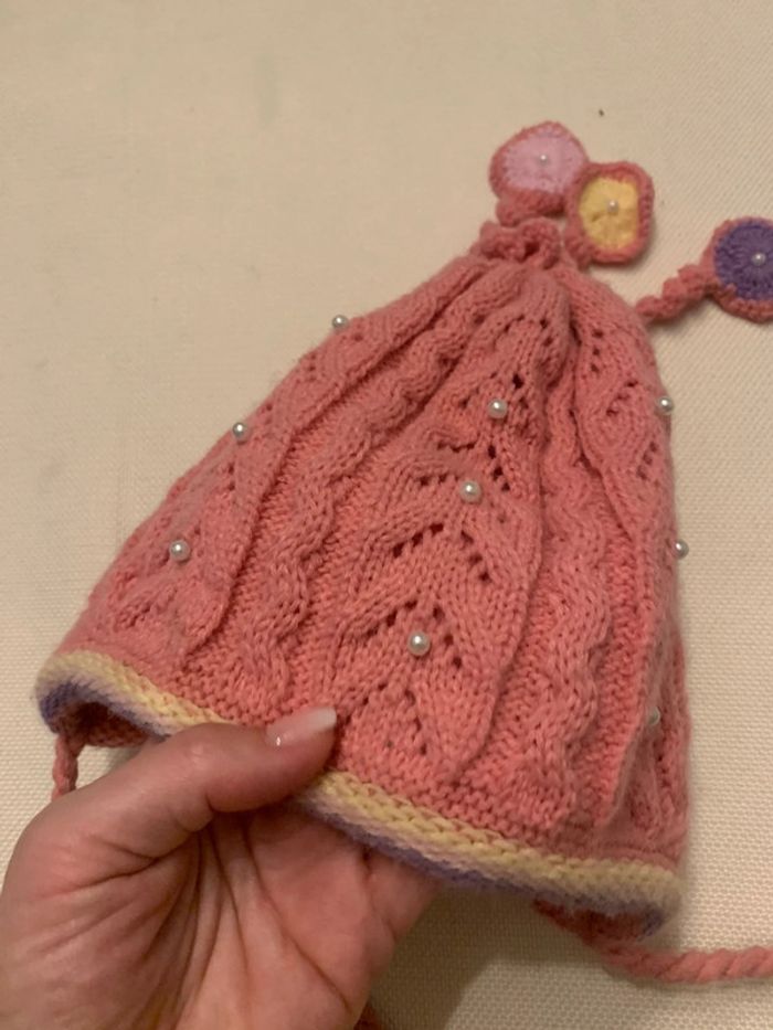 Bonnet rose perles et pompons Pour fille 1/2 ans En très bon état #fille12moisjoshana
