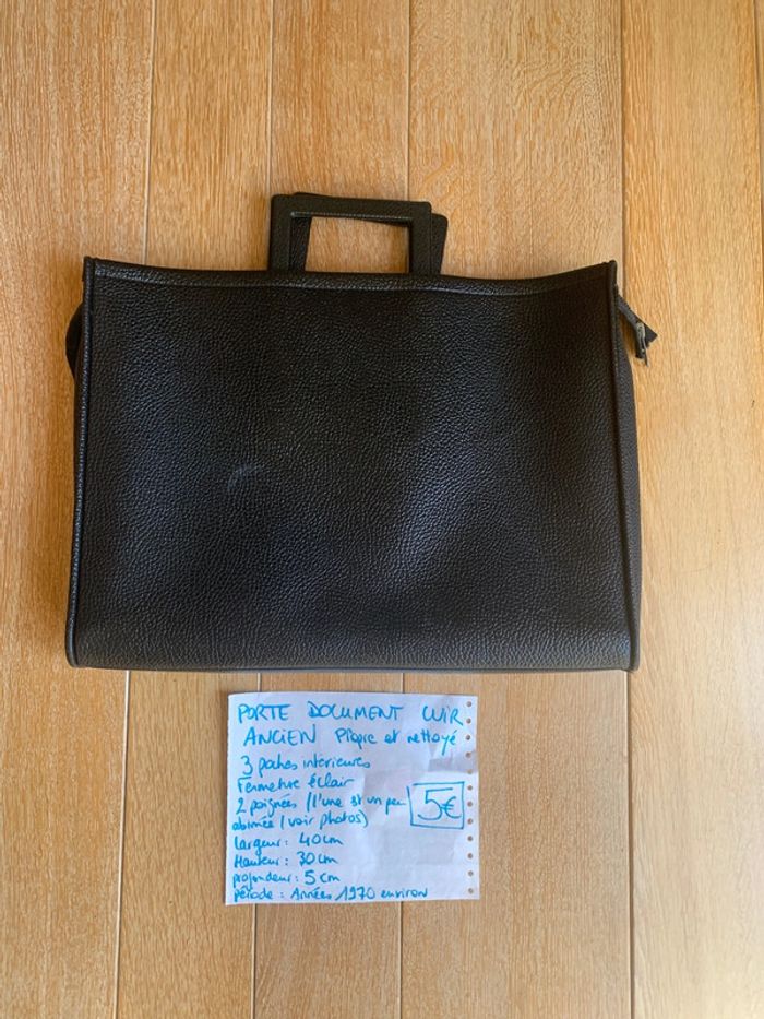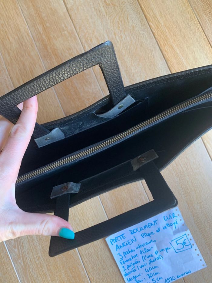 Porte document simili cuir ancien propre et nettoyé 3 poches intérieures Fermeture éclair 2 poignées (l’une est un peu abîmée, voir photo) Largeur 40 cm Hauteur 30 cm Profondeur 5 cm Vintage #joshanafemme