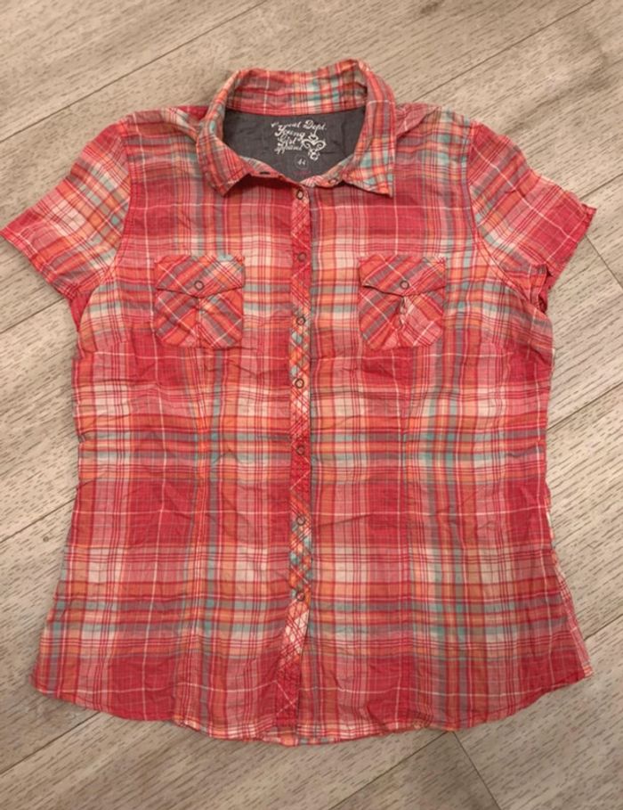 Chemise à carreaux coloré de chez Kiabi, à manches courtes indiqué, taille 44, mais taille petit #joshanafemme