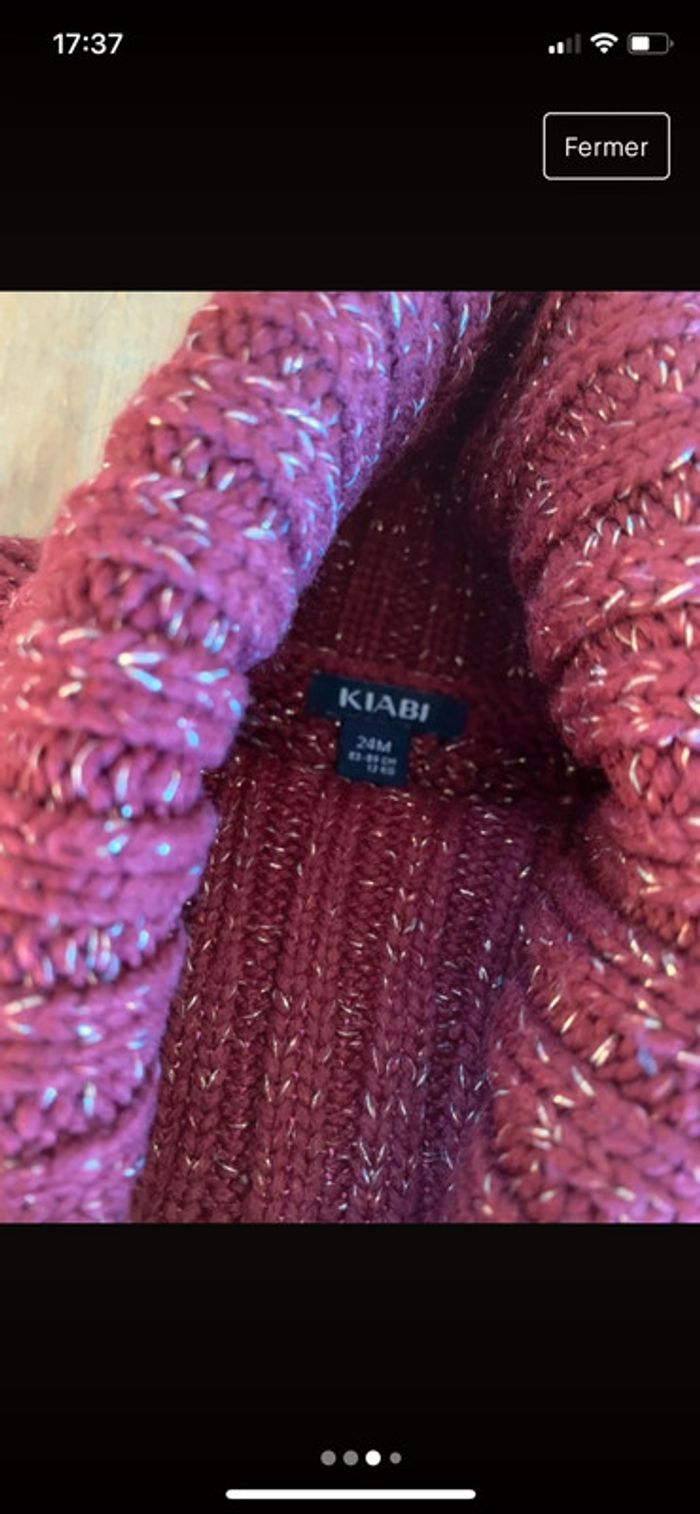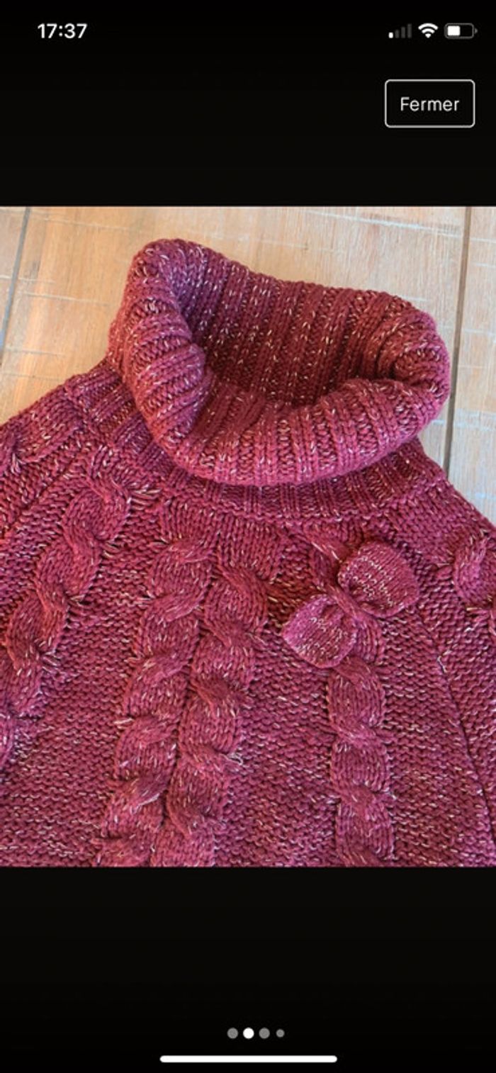 Pull bordeaux et paillette avec col roulé Style poncho avec petites manches basses En très bon état #fille2ansjoshana #joshanahiver