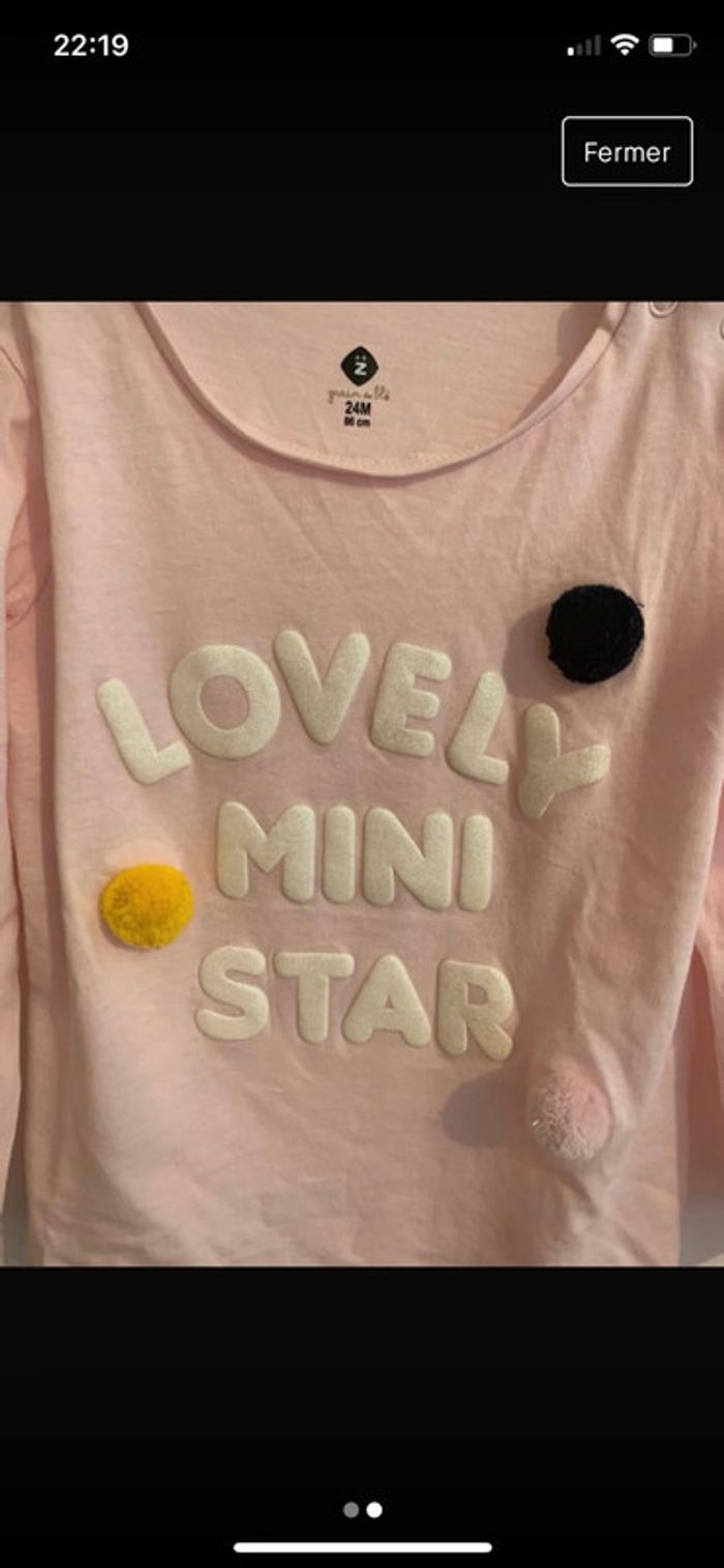 joli t-shirt léger à pompons écriture blanc pailleté en parfait état très peu porté #fille2ansjoshana
