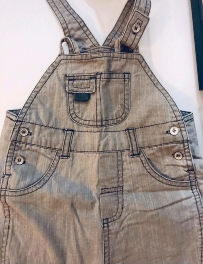 Salopette en jean gris clair Ouverture pression à l’entre jambes, pratique pour changer la couche ! Taille 12 mois #garcon12moisjosh
