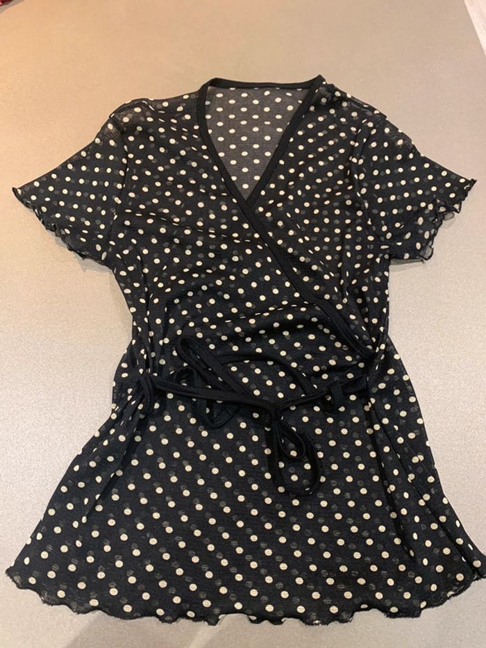 Noir à pois blanc transparent Très joli Taille unique convenant pour taille 38/40 #joshanafemme