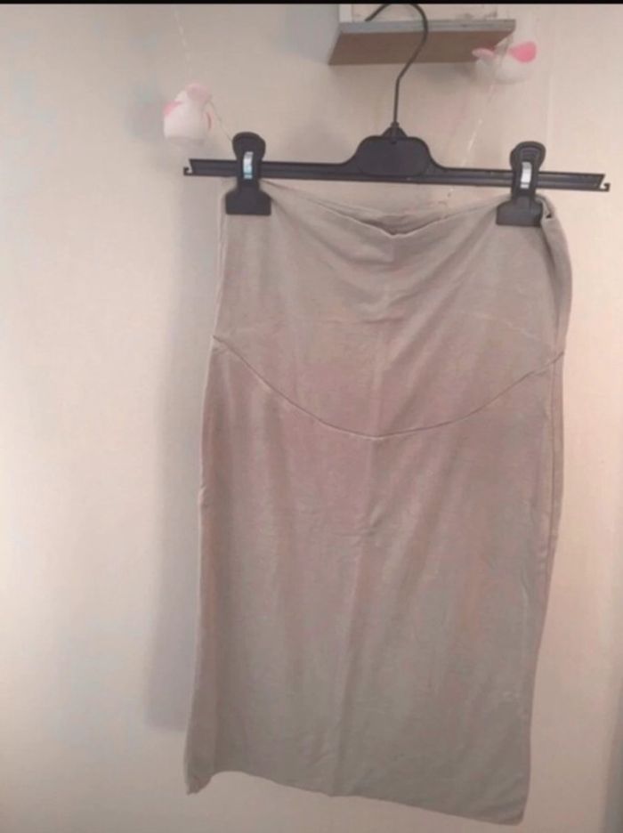 jupe beige de maternité près du corps et très agréable à porter (ne serre pas!) Pour taille habituelle 34/36 petit accro à l’arrière en bas -> voir photo. #joshanafemmegrossesse #joshanafemme