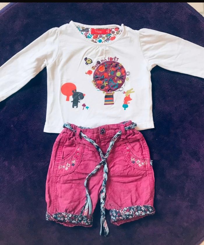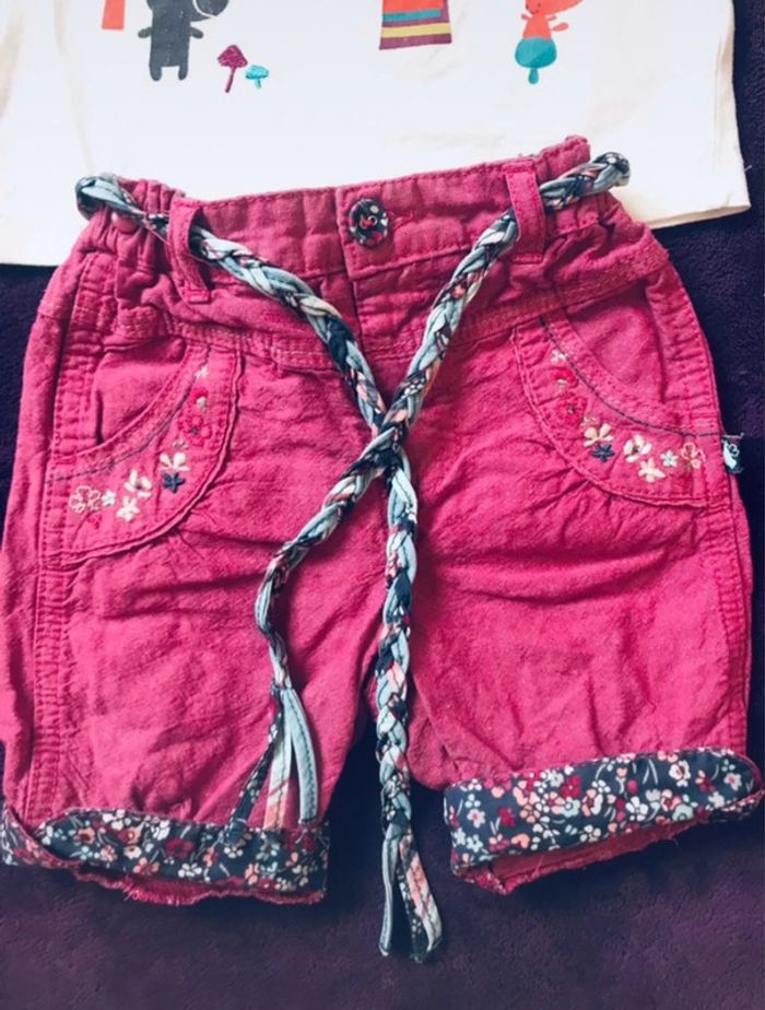ensemble composé d’un sort fleuri sergent major et haut à motif coloré tissaia taille 6 mois en très bon état #fille6moisjoshana