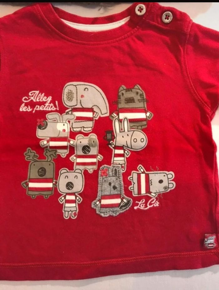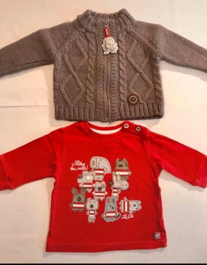 lot de 2 vêtements La compagnie des Petits en très bon état : - 1 t-shirt manches longues motif rugby très sympa - 1 gilet pull tout chaud #joshanabébé #garcon6moisjosh