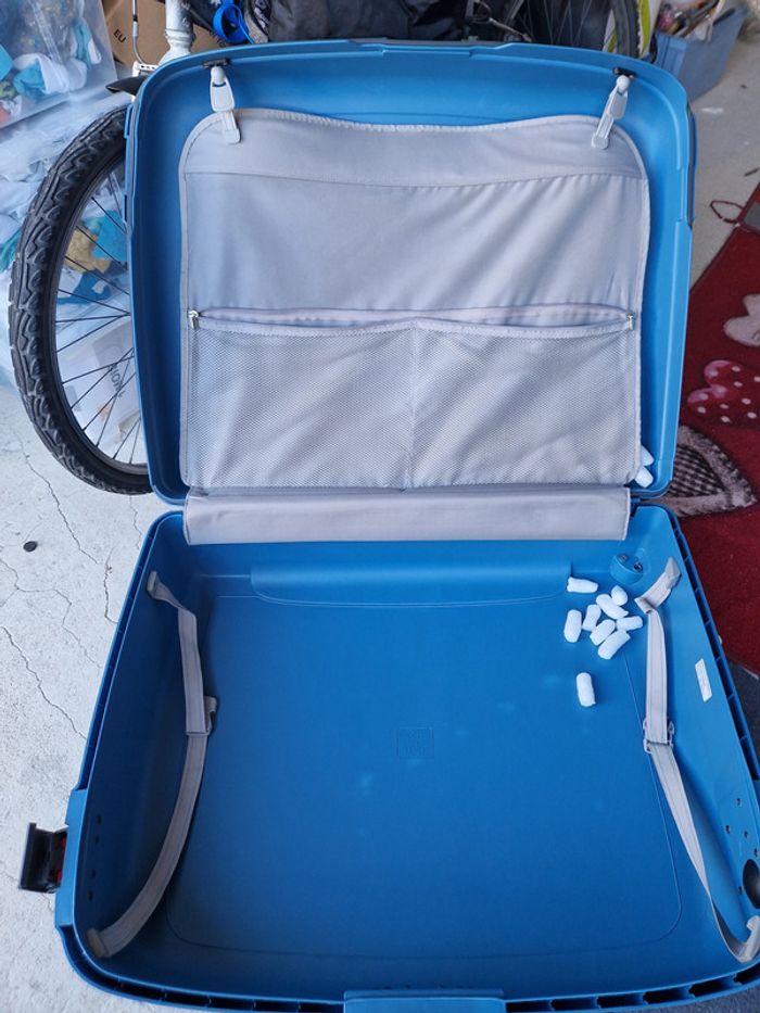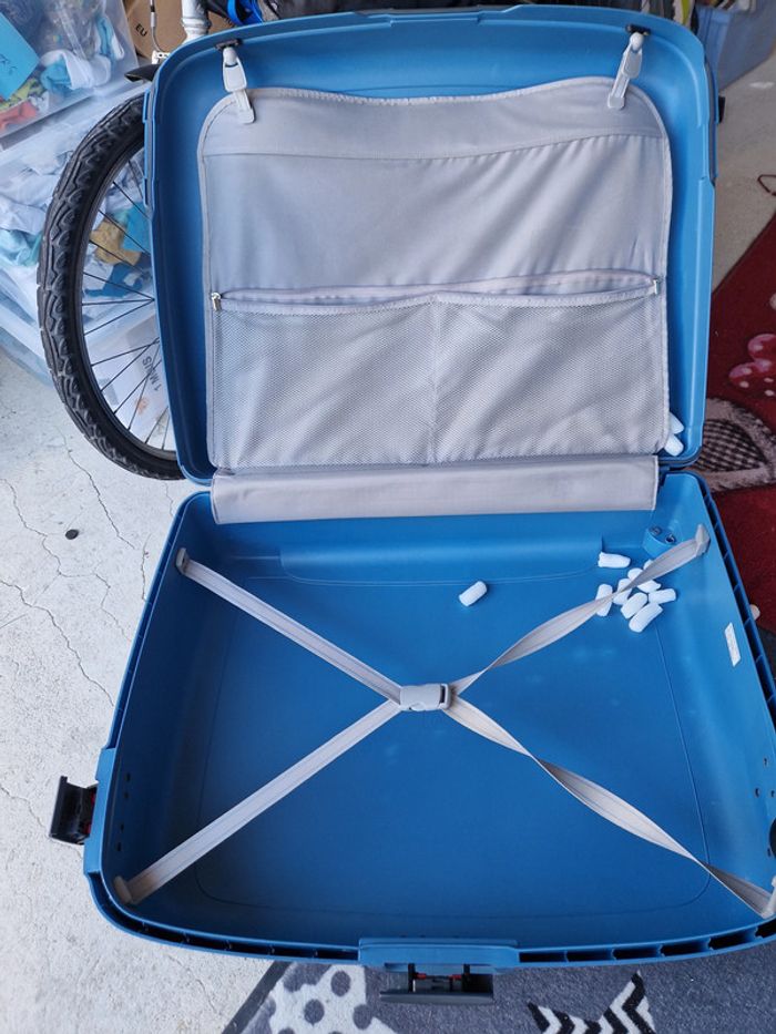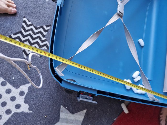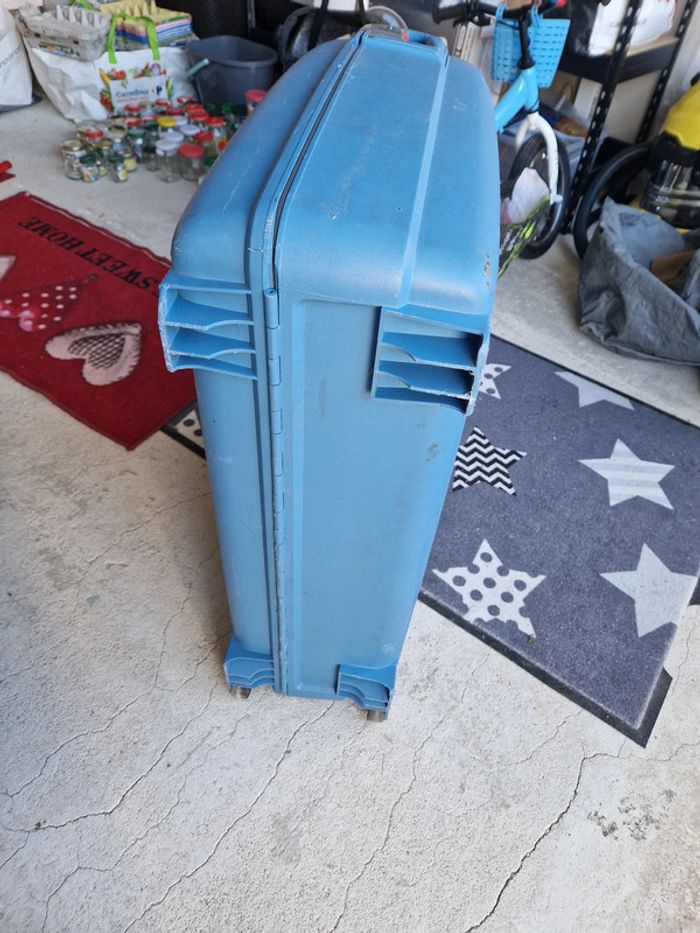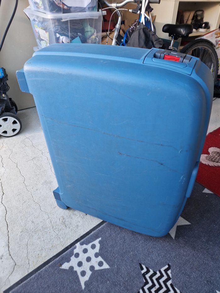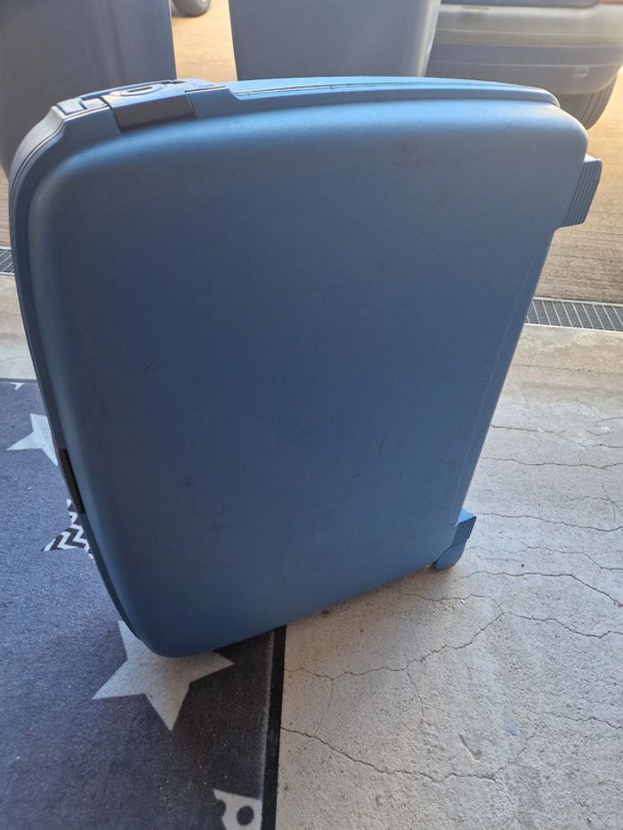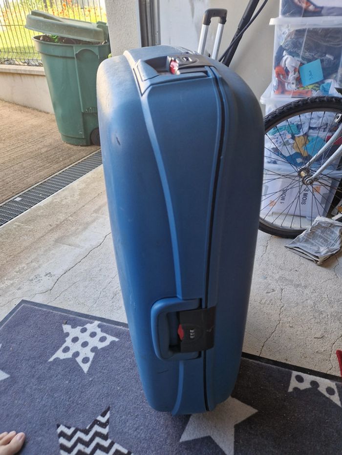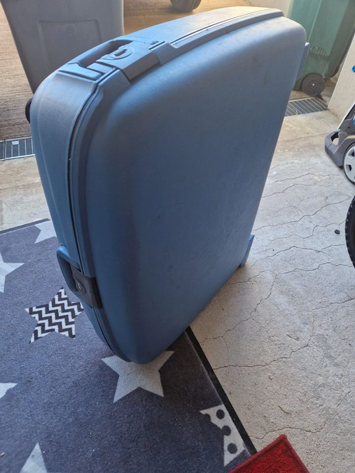 1 grande valise bleu 77 x 60 x 28 avec multipoches et sangle pr tenir les vêtements qqes rayures à l'extérieur mais la valise roule et les systèmes à fermeture fonctionnent (fermeture à code). #laetie69_femmesACCESSOIRES
