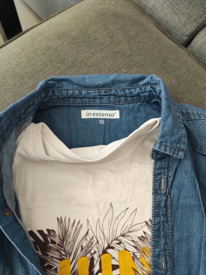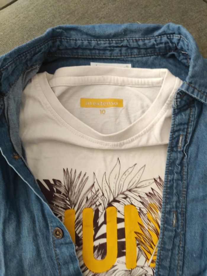 Chemise et tee shirt garçon manches courtes en excellent état, très peu porté. In extenso, taille 10 ans