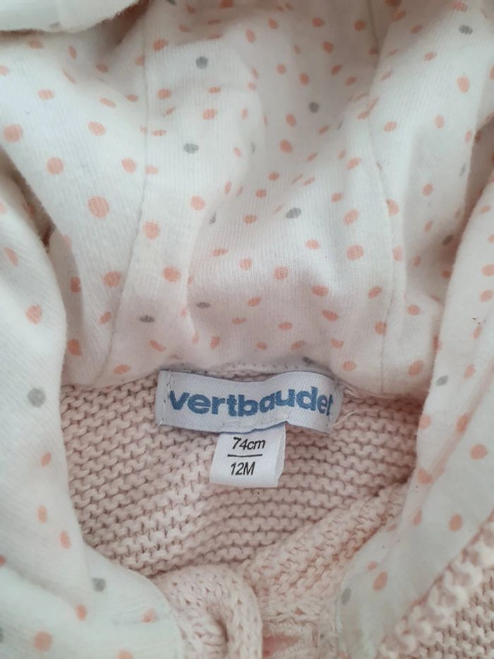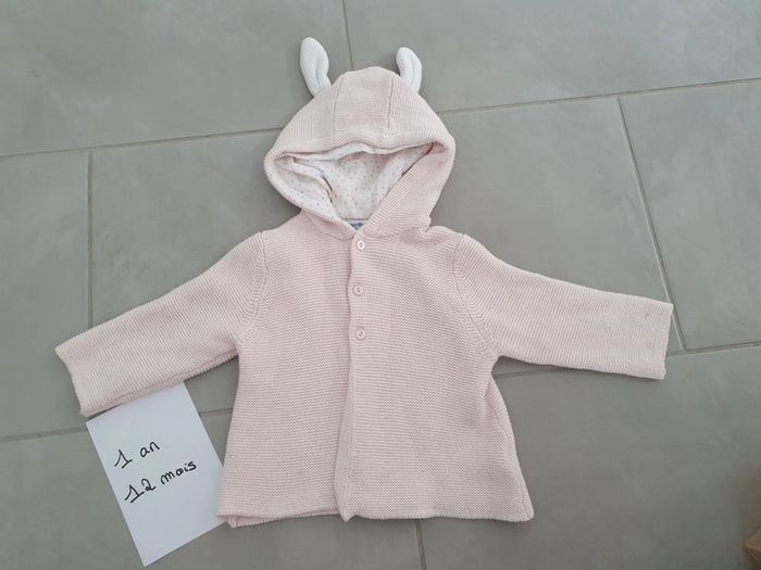 Cardigan vertbaudet avec oreille de lapin, en très bon état, peu porté. #amandine38480fille12mois1an